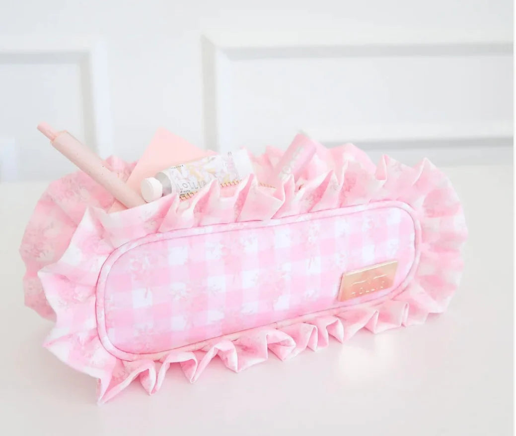 Hollis Pink Ruffled Pencil Bag