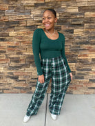 Step into style and comfort with our Kendra Pants, featuring a lively plaid pattern that adds a fun twist to any outfit.
