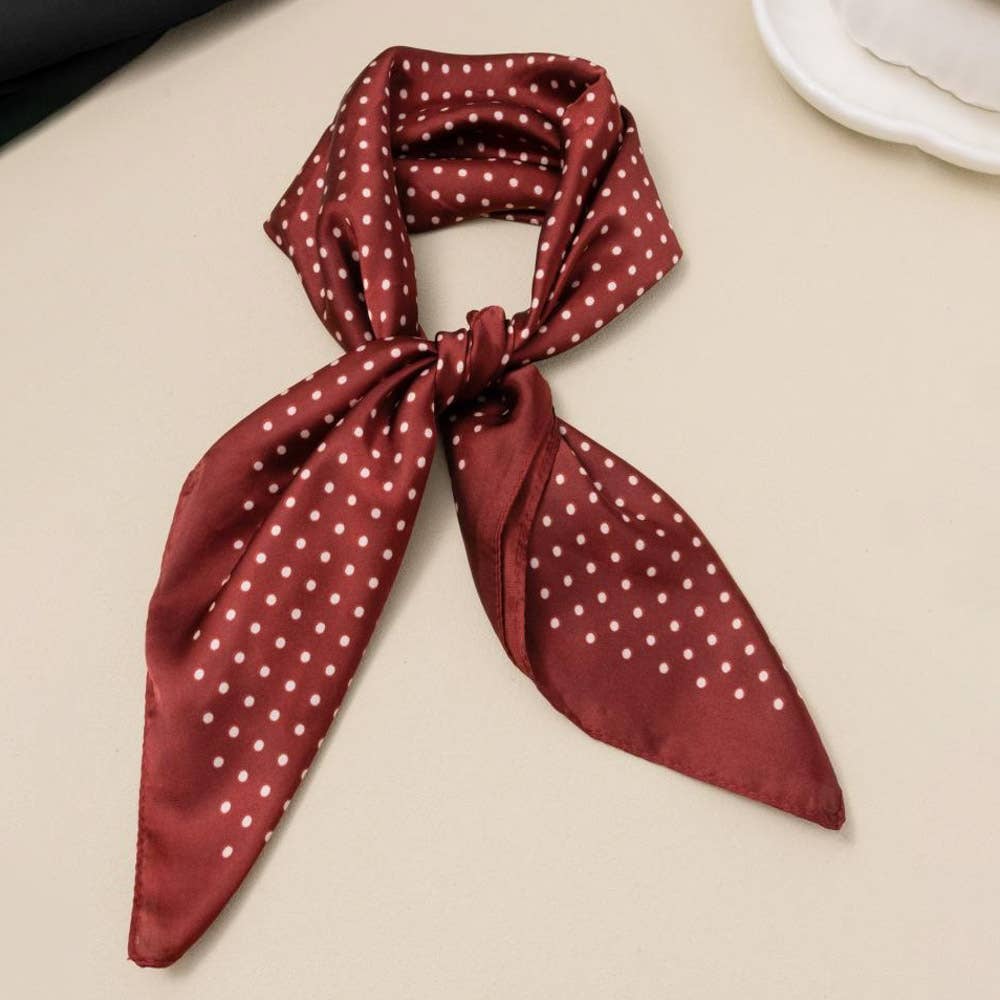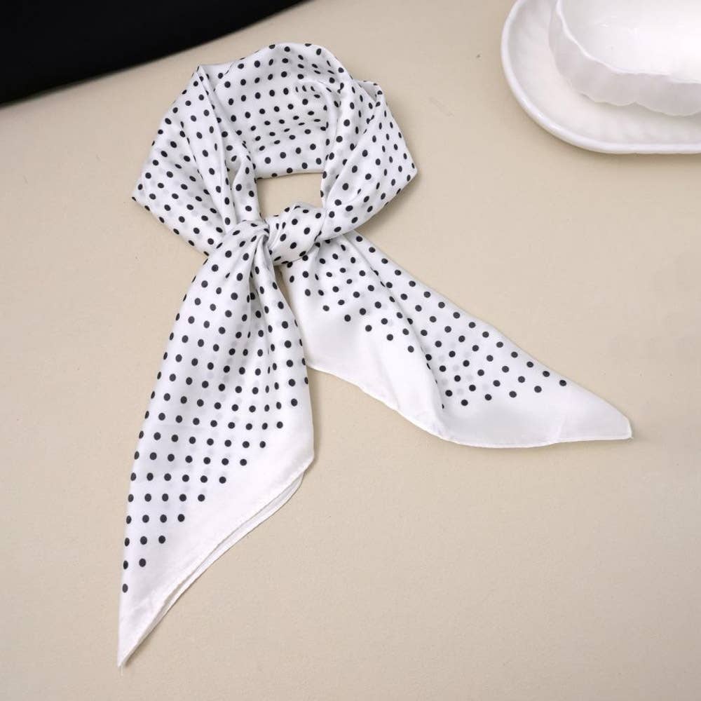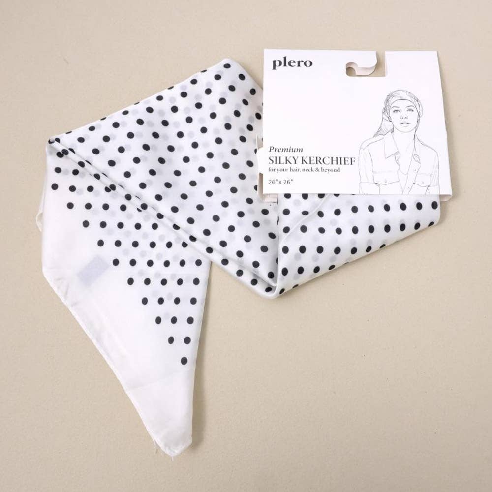Elevate your accessory game with this charming polka dot silk square scarf. Measuring a versatile 26" x 26", the Parker delivers timeless style with a playful twist. Drape it around your neck, tie it in your hair, or style it however your mood strikes. The silky fabric feels luxurious against your skin while the classic dot pattern pairs effortlessly with any outfit. A wardrobe essential that's equal parts sophisticated and fun.