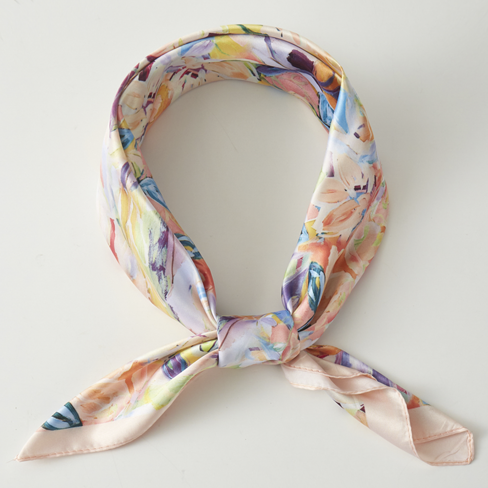 Wrap yourself in effortless style with this charming square scarf featuring a delicate floral design. Crafted from silky polyester, this 27.5" x 27.5" accessory ties around your neck for a chic, versatile look that works with any outfit. Perfect for adding a pop of personality to your everyday ensemble.