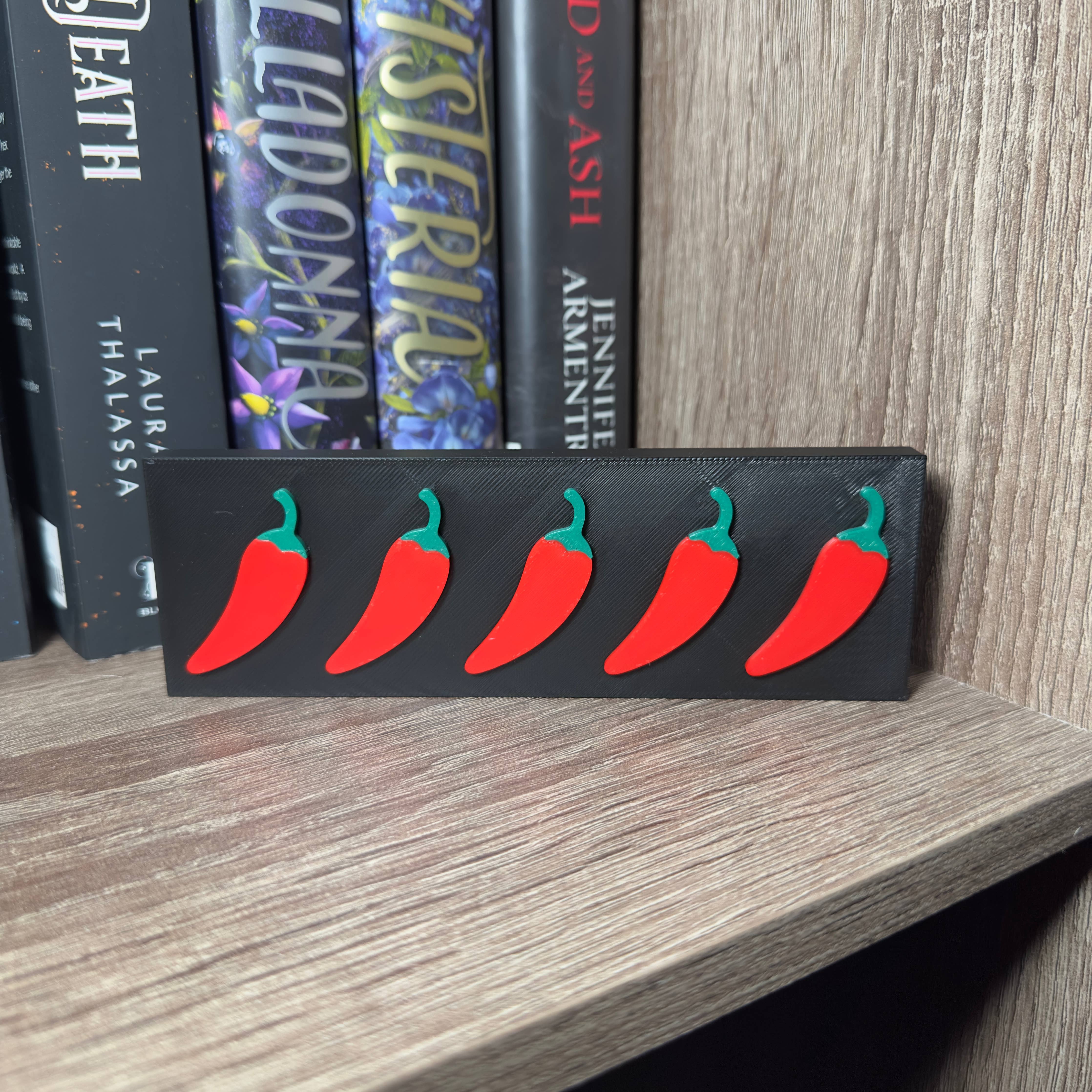 5 Peppers Spicy Rating Bookshelf Sign