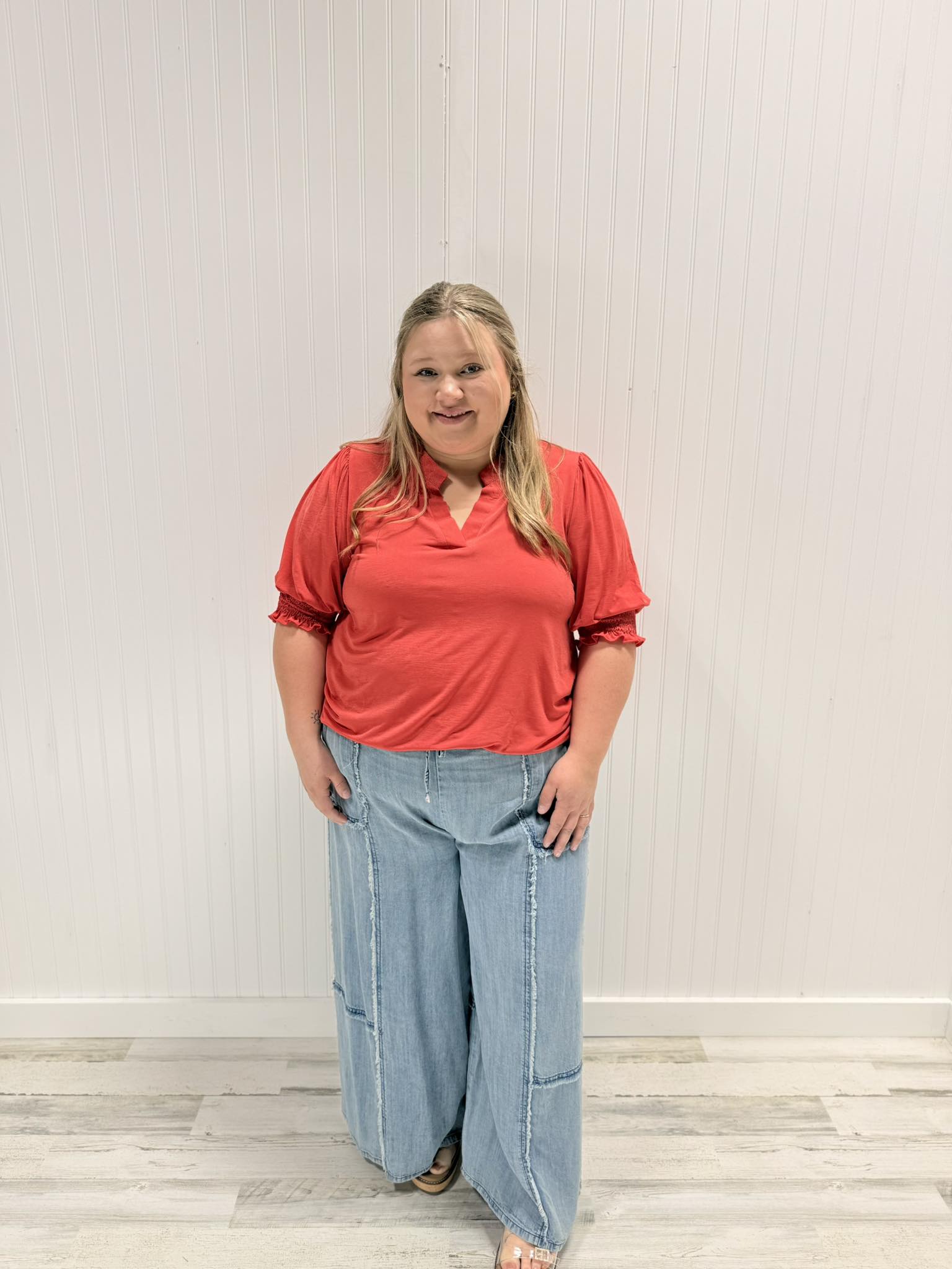 Meet your new go-to piece: the Lizzy Top. This short-sleeve wonder combines timeless charm with laid-back comfort that actually works for real life. The mandarin collar and gently puffed sleeves give you that effortless polish, while intricate smocking adds just the right amount of personality. Best part? The wrinkle-resistant fabric means you stay looking fresh and put-together all day long, no fussing required.