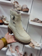 Add a fun twist to your footwear collection with the Mia Toula Boots. These playful ankle boots combine soft faux suede with eye-catching stitch details and a stylish buckle strap for a look that’s both trendy and versatile. The chunky heel and platform sole not only boost your height but also give you confident traction, making them perfect for dancing through the day or turning heads on the street. Whether paired with jeans or your favorite dress, Mia Toula Boots bring a spirited edge to any outfit.