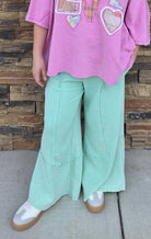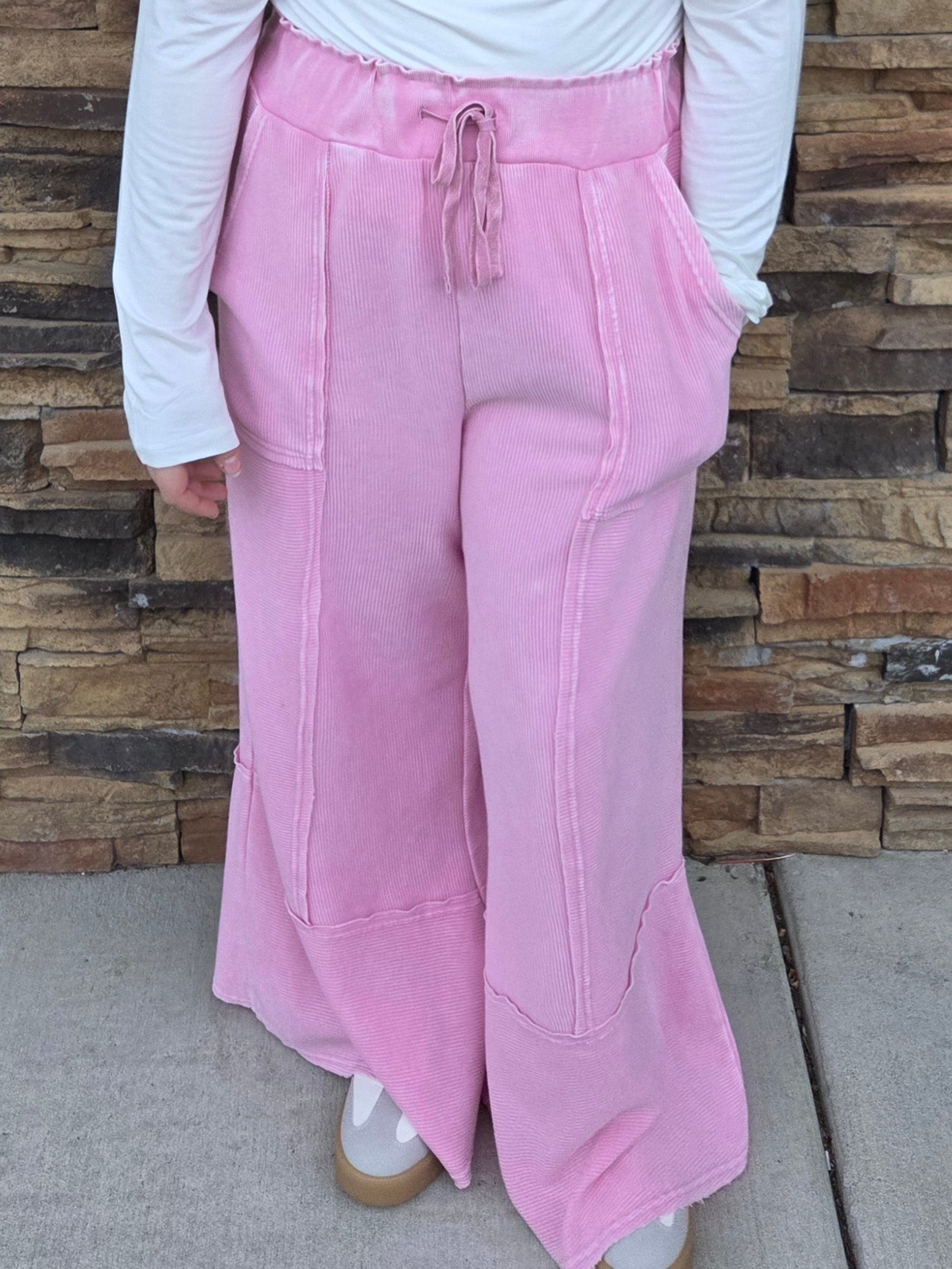 Meet the Rue Pants—your new go-to for laid-back luxury! These mineral-washed bellbottoms feature a relaxed wide-leg silhouette that's equal parts comfy and chic. The textured ribbed knit fabric (65% cotton, 35% polyester) feels amazing against your skin, while oversized front patch pockets add both style and function. A drawstring elastic waistband keeps things cozy, and the full-length cut hits just right. Pro tip: Snag the matching set (sold separately) to complete the vibe. Imported and ready to become your favorite pair.