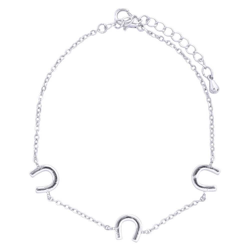 Stack on the luck with this charming horseshoe metal bracelet that's ready for your personal flair. The charm station design gives you endless styling possibilities—mix, match, and make it uniquely yours. Whether you're chasing good vibes or just love a fun accessory, this playful piece is your new wrist essential.