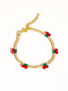 18K Gold Handmade Beaded Cherry Bracelet 18K Gold Plating Brass Assorted Beads Chain Length (inch): 6 Extension Length (inch): 1 - Lead and Nickel Free