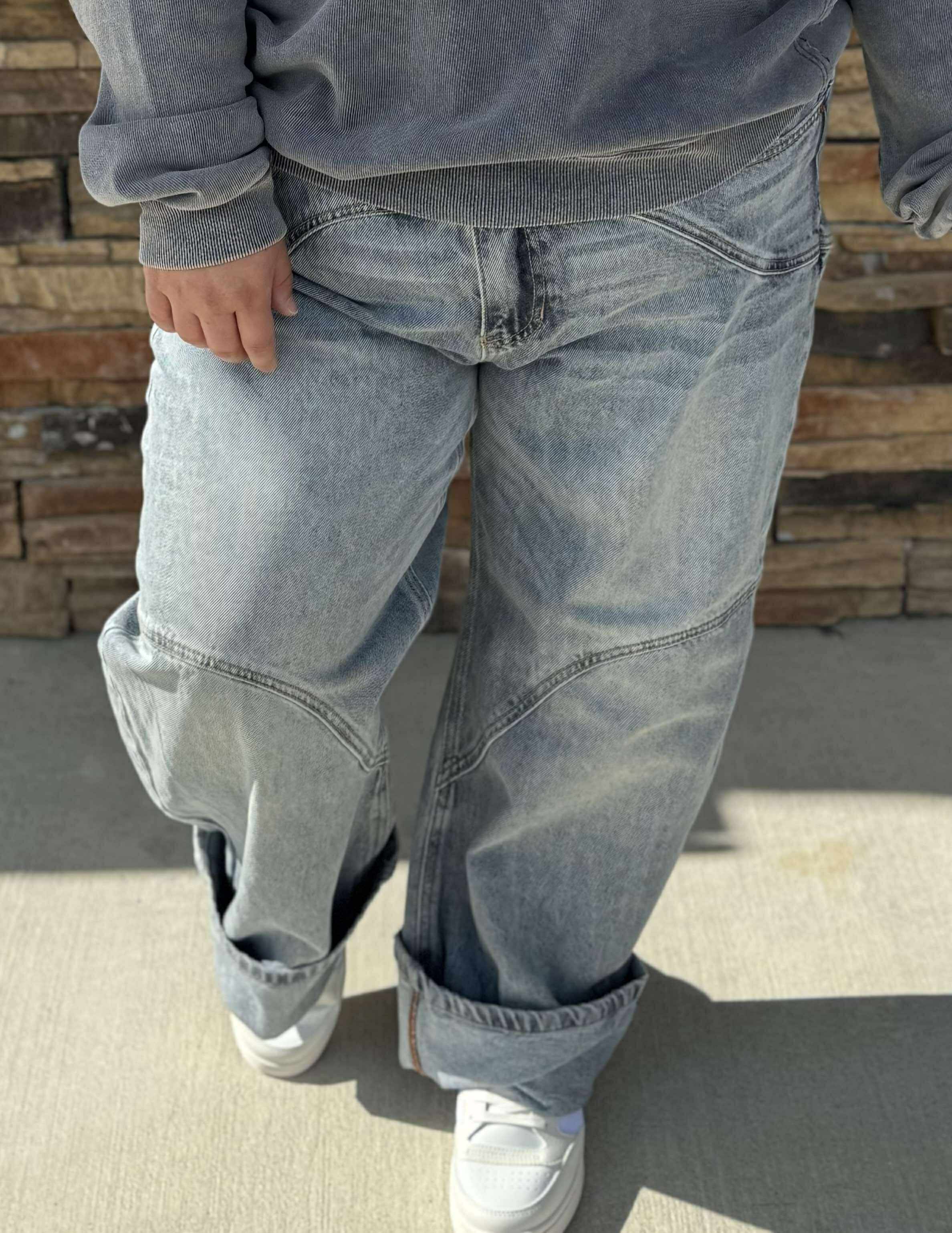 These barrel jeans are your new go-to for effortless cool. The classic denim construction keeps things timeless.