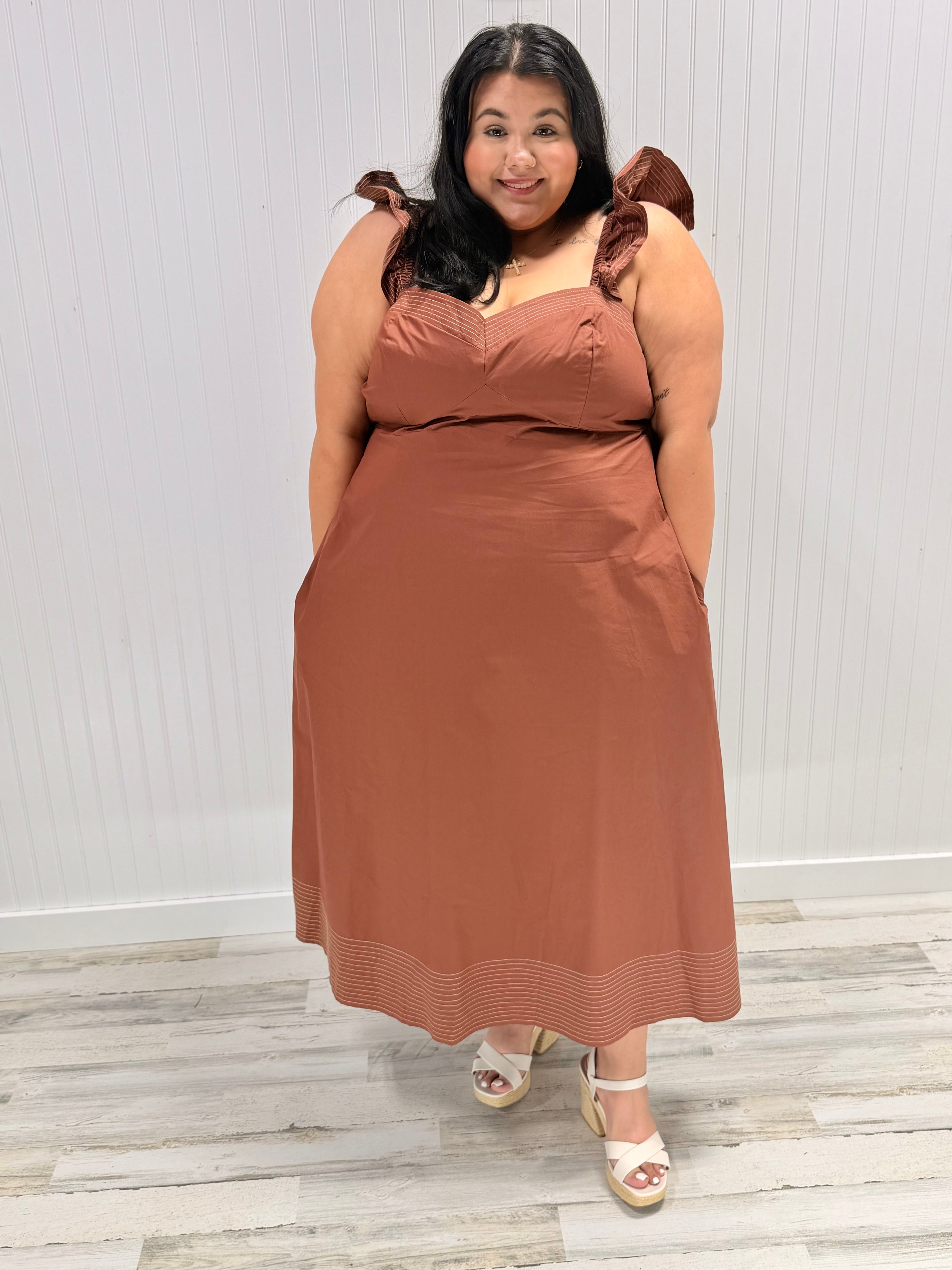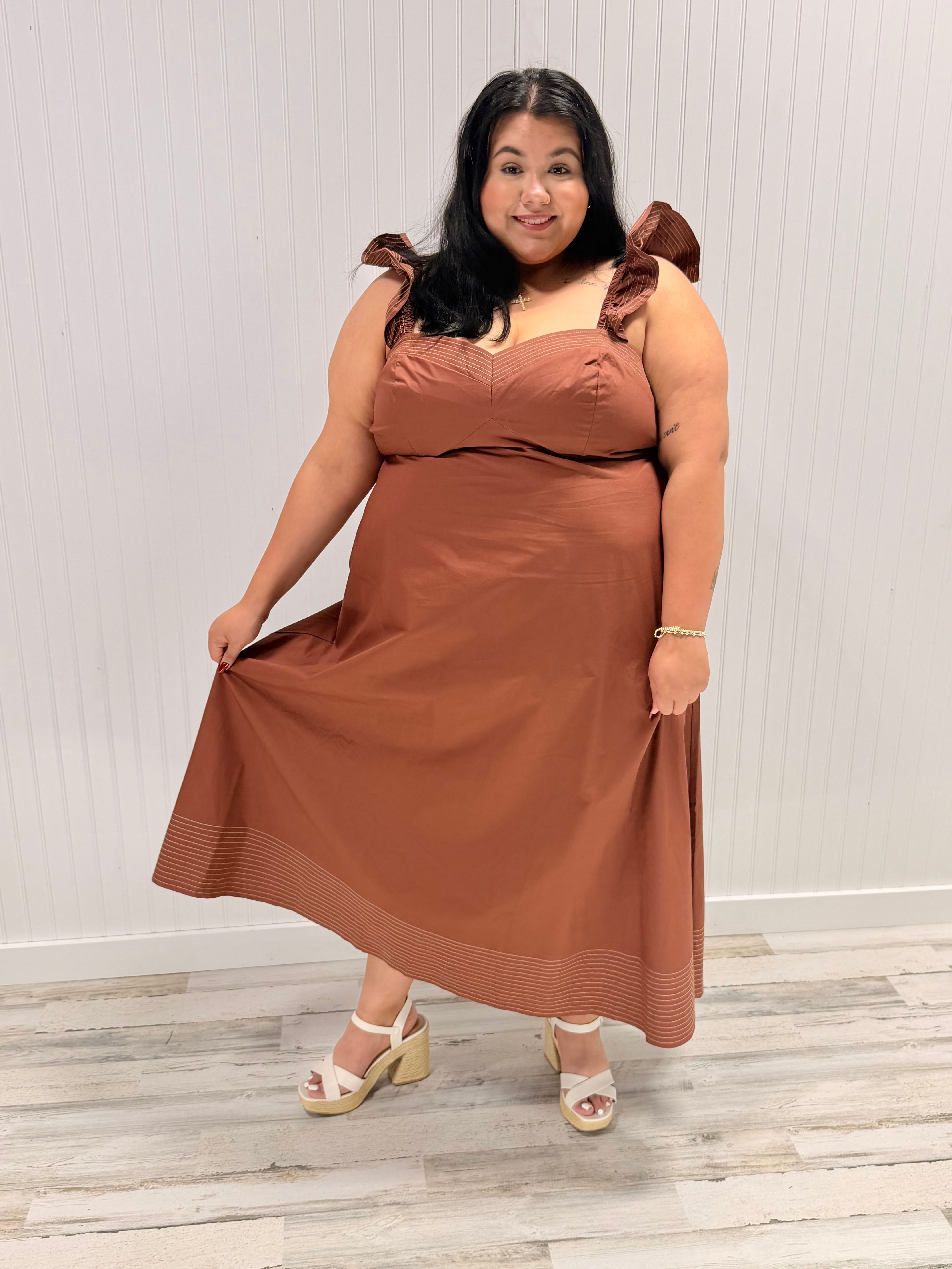 This charming midi dress is your ticket to feeling fabulous from morning to night. Boasting a romantic sweetheart neckline, whimsical flutter sleeves, and a twirly circle skirt, it's designed to make you smile. The smocked back bodice adds a delightful vintage touch that sets it apart. Crafted entirely from 100% cotton, it's wonderfully breathable and comfortable enough to wear all day long. Whether you're heading to a celebration or just want to feel extra special, this dress delivers pure style and comfort.