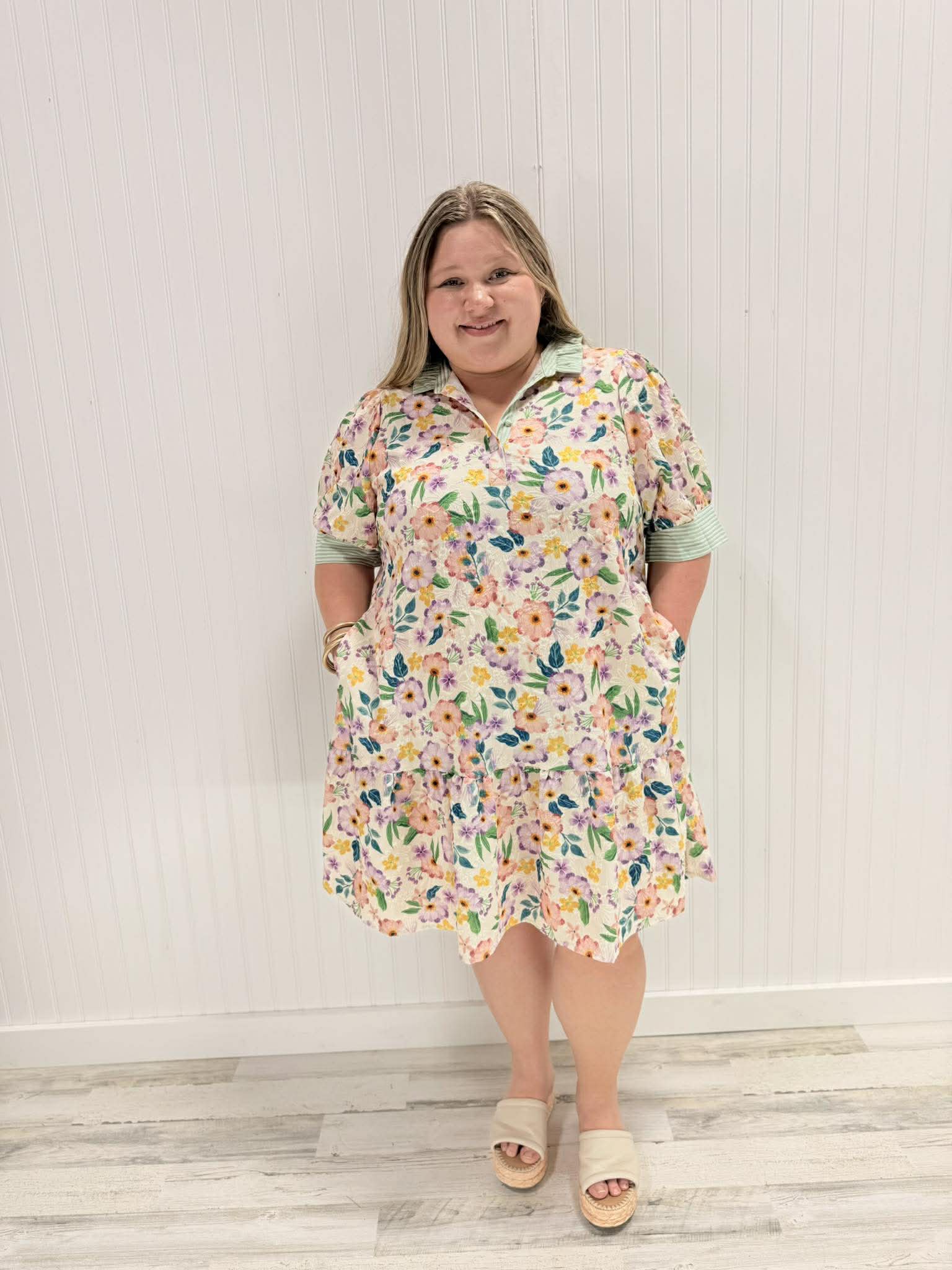 Radiate confidence in this playful sage dress that's all about celebrating your unique style. The vibrant floral jacquard print makes a bold statement, while the notched V-neckline adds a touch of sophistication. Adorable puff sleeves bring whimsy and fun, and the tiered babydoll cut is expertly designed to flatter your curves with movement and dimension. Made from 100% polyester, this dress offers comfort and ease for whatever adventures come your way.