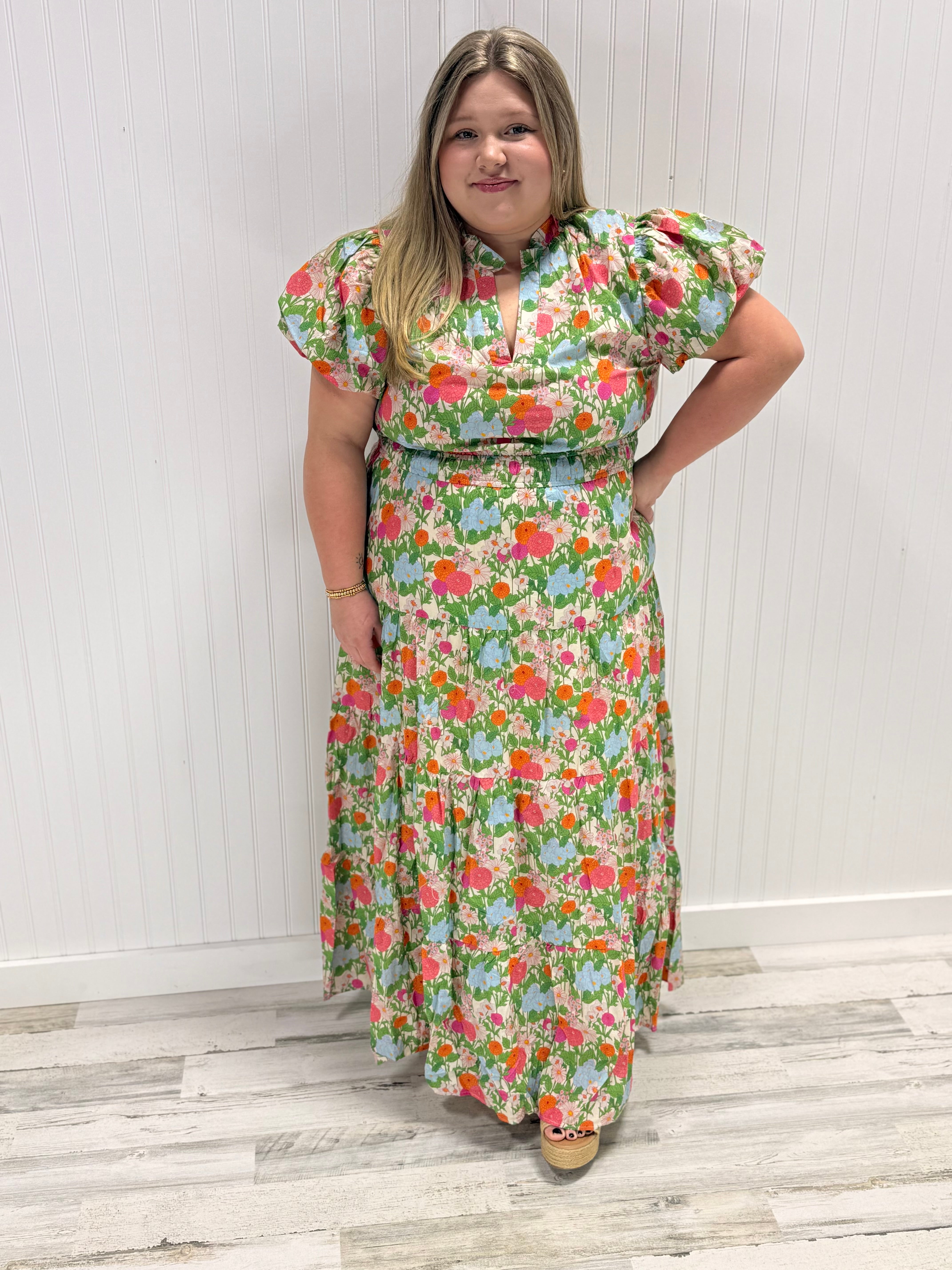 Meet your new go-to dress for effortless style! This adorable mini features a cheerful floral print paired with charming bubble puff sleeves that steal the show. The tiered design flatters your curves while the double elasticated waist keeps everything in place comfortably. Made from breathable, lightweight woven fabric with a full lining for peace of mind, this pullover dress is ready for whatever fun you have planned.
