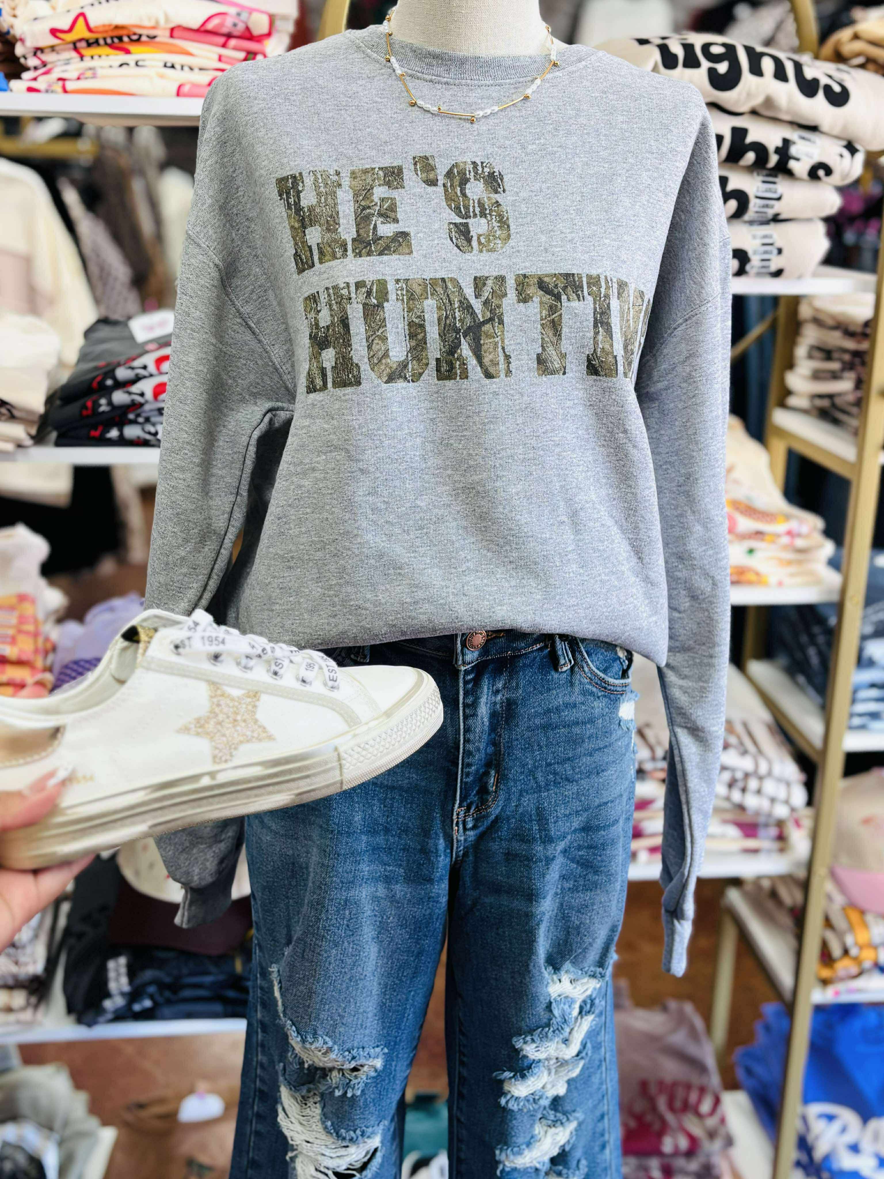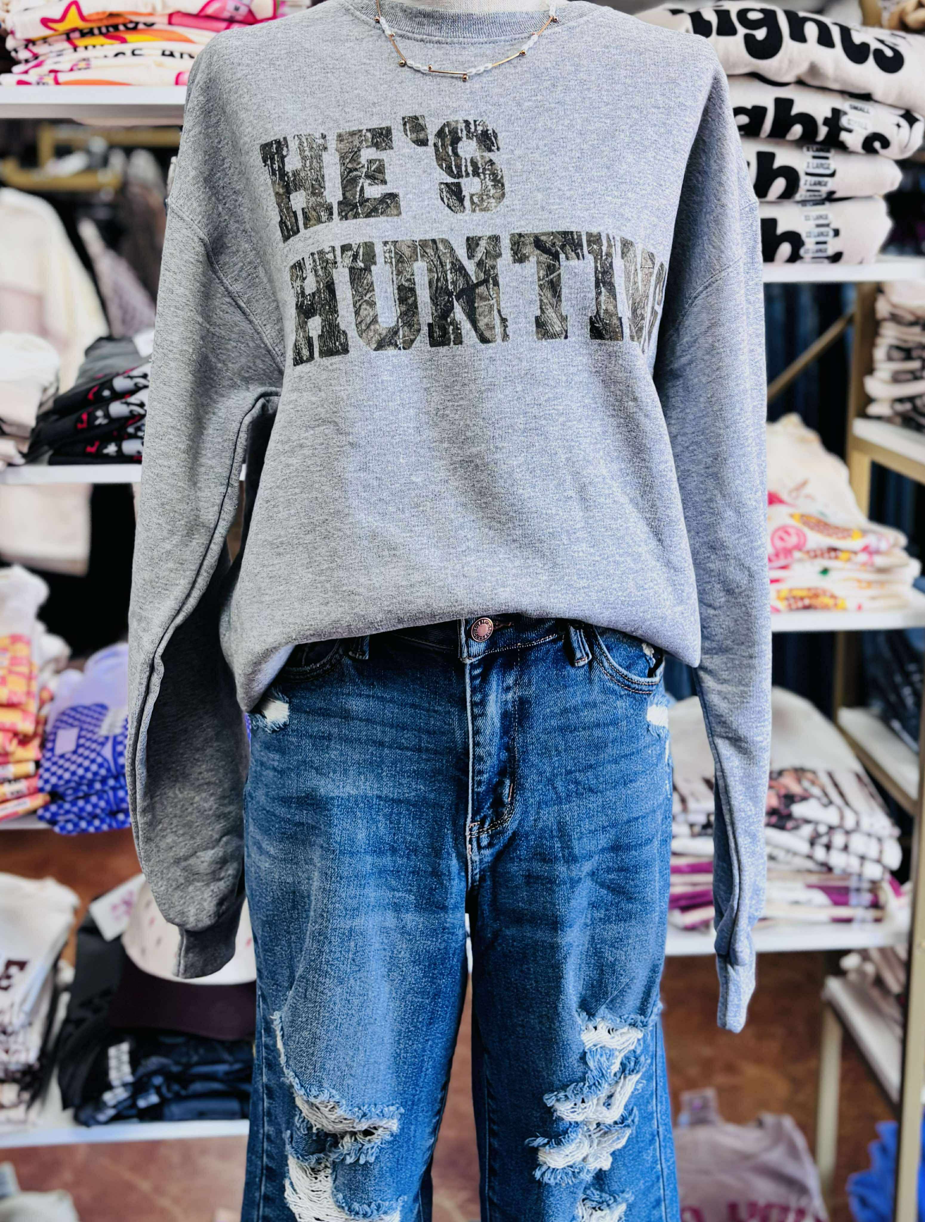 Stay cozy and on the hunt for fun with the He's Hunting Sweatshirt. Perfect for chilly days, this sweatshirt combines comfort with a playful vibe, making it a go-to piece for casual outings or relaxing at home. Whether you're tracking adventures or just tracking down snacks, this sweatshirt has you covered in style and warmth.