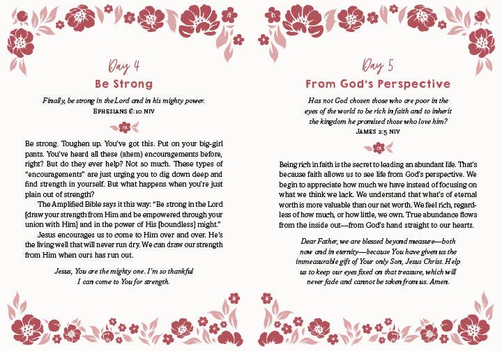 This daily devotional collection is designed for women just like you—those who want to grow deeper in their faith and who desire an intimate connection to their heavenly Father’s heart.