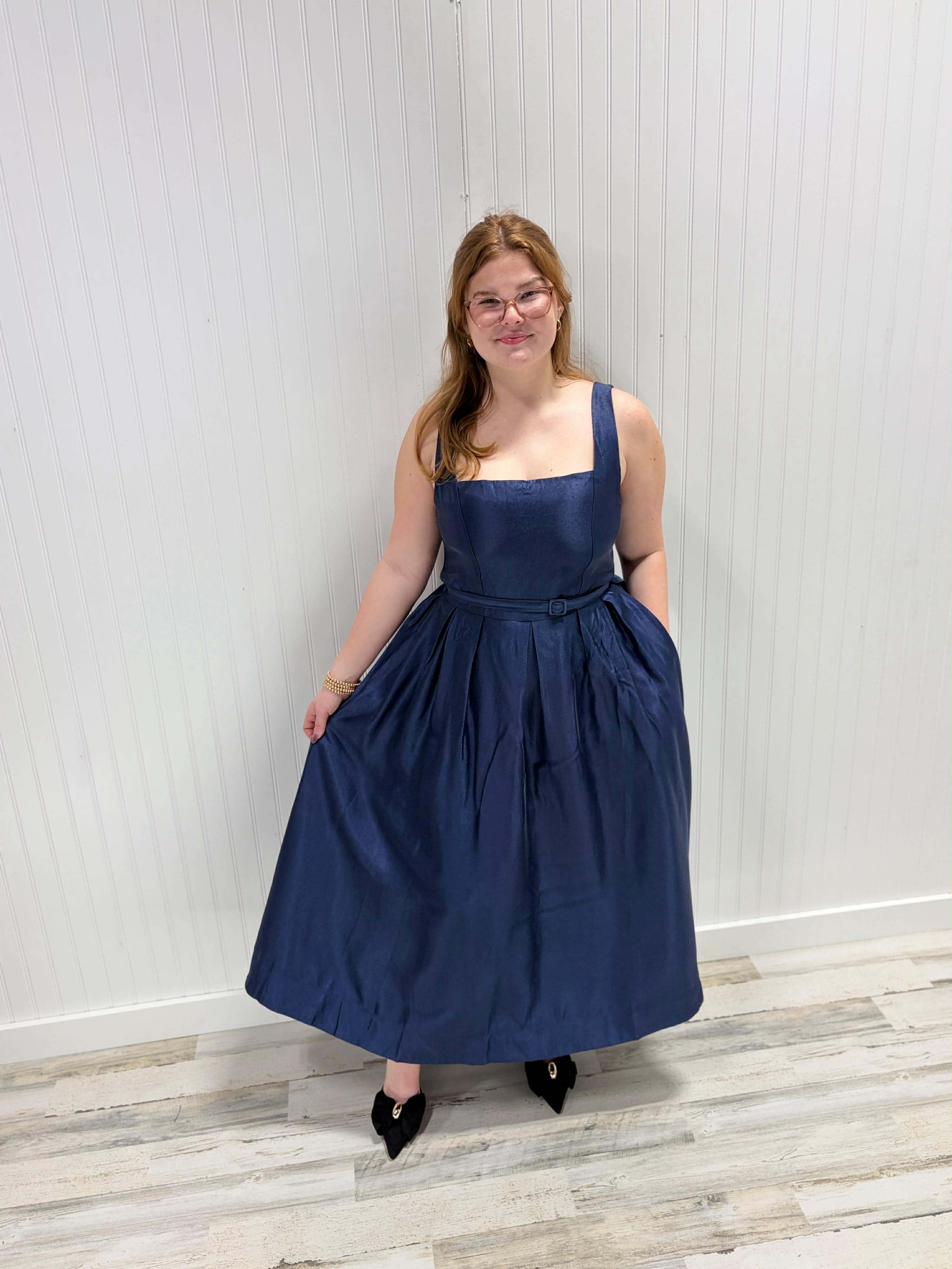 Slip into the Aviana Dress and let your style do the talking! This breezy midi number features a chic straight neckline and sleeveless cut, paired with a flattering self-belt and graceful full skirt. The back zipper keeps things effortless. Crafted from a luxe rayon blend (84% rayon, 10% polyester, 6% nylon) with a smooth polyester lining, it's the perfect go-to for days when you want to feel polished without trying too hard.