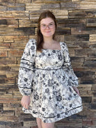 The Kamila Dress is a playful long sleeve mini that brings blooming charm wherever you go. With delicate floral details woven throughout, this dress combines feminine flair with flirty length for effortless style. Perfect for making a statement at brunch or a night out, its lightweight fabric ensures you stay comfortable while turning heads. Embrace your playful side and let the Kamila Dress be your go-to for fresh, fun fashion.