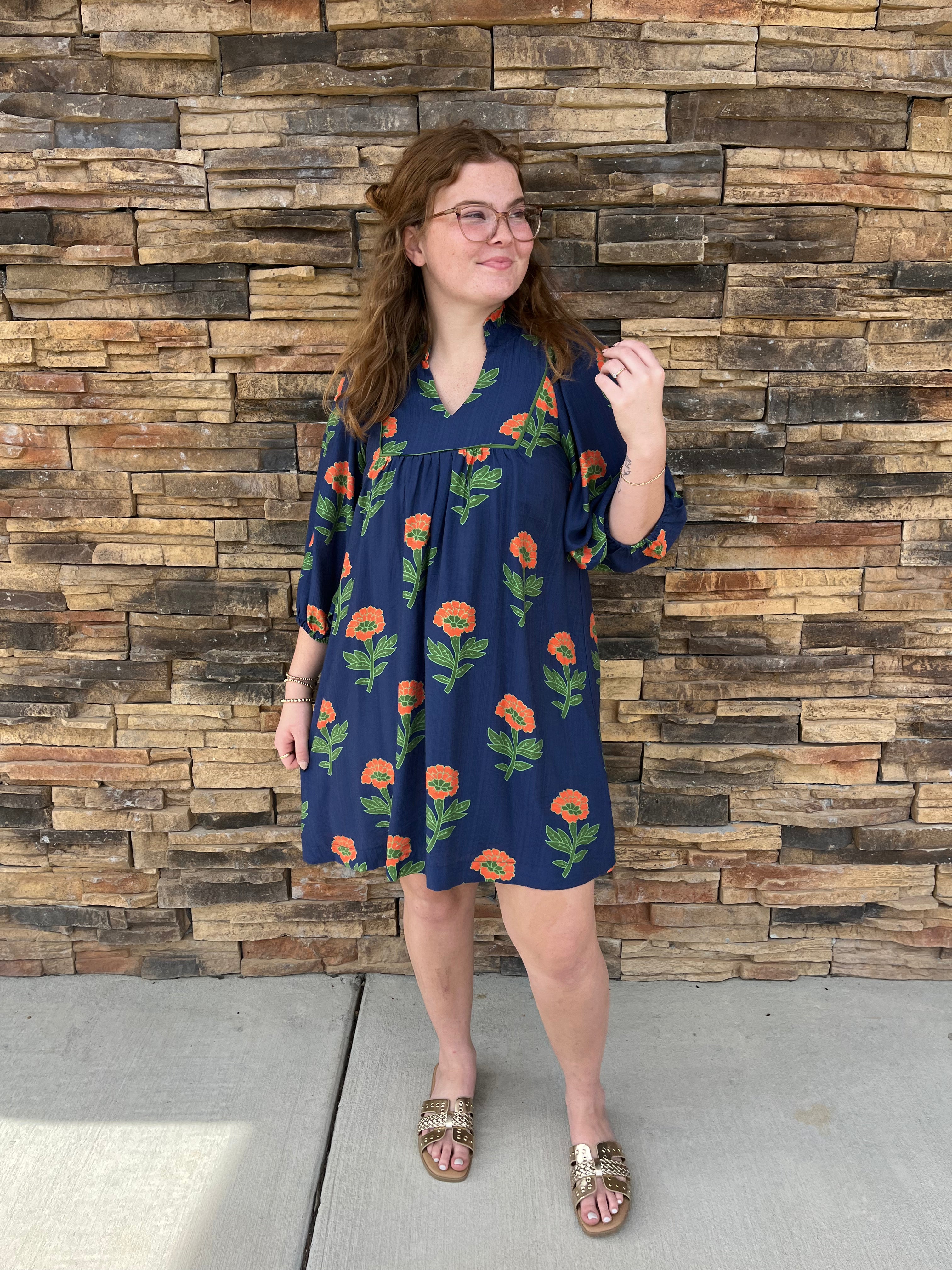 Step into charm with the Vega Dress, featuring playful 3/4 quarter sleeves and an irresistibly cute floral print. Perfect for adding a touch of whimsy to your day, this dress blends comfort and style effortlessly.