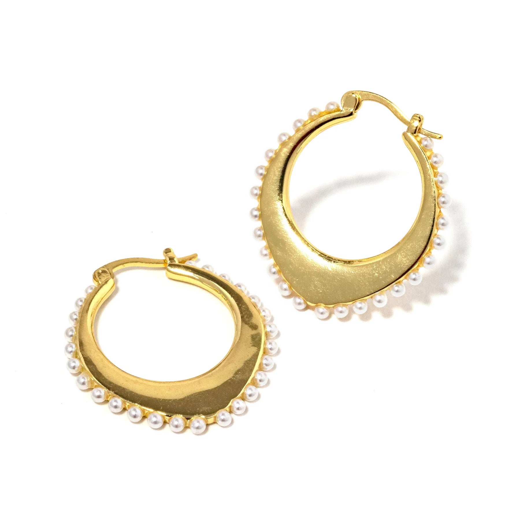 Delicate pearl accents dance around these charming hoop earrings, bringing a touch of understated elegance to any look. The petite pearls catch the light beautifully, creating subtle sparkle without overwhelming your style. Perfect for everyday wear or special occasions, these versatile earrings effortlessly elevate your ensemble with timeless sophistication.
