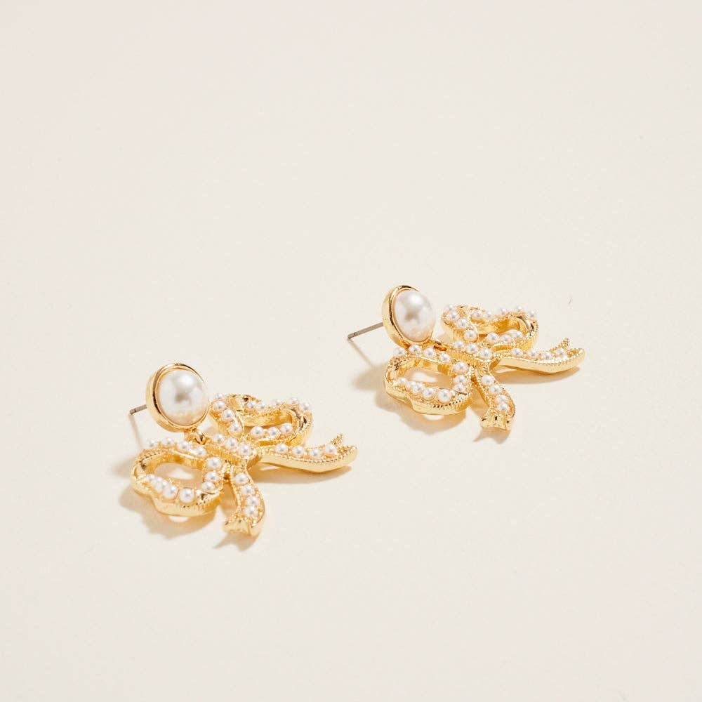 Classic elegance meets modern charm in these ribbon bow earrings adorned with delicate pearl accents. Each bow is connected to a single pearl post, creating a soft, feminine look that’s perfect for weddings, parties, or everyday sophistication.