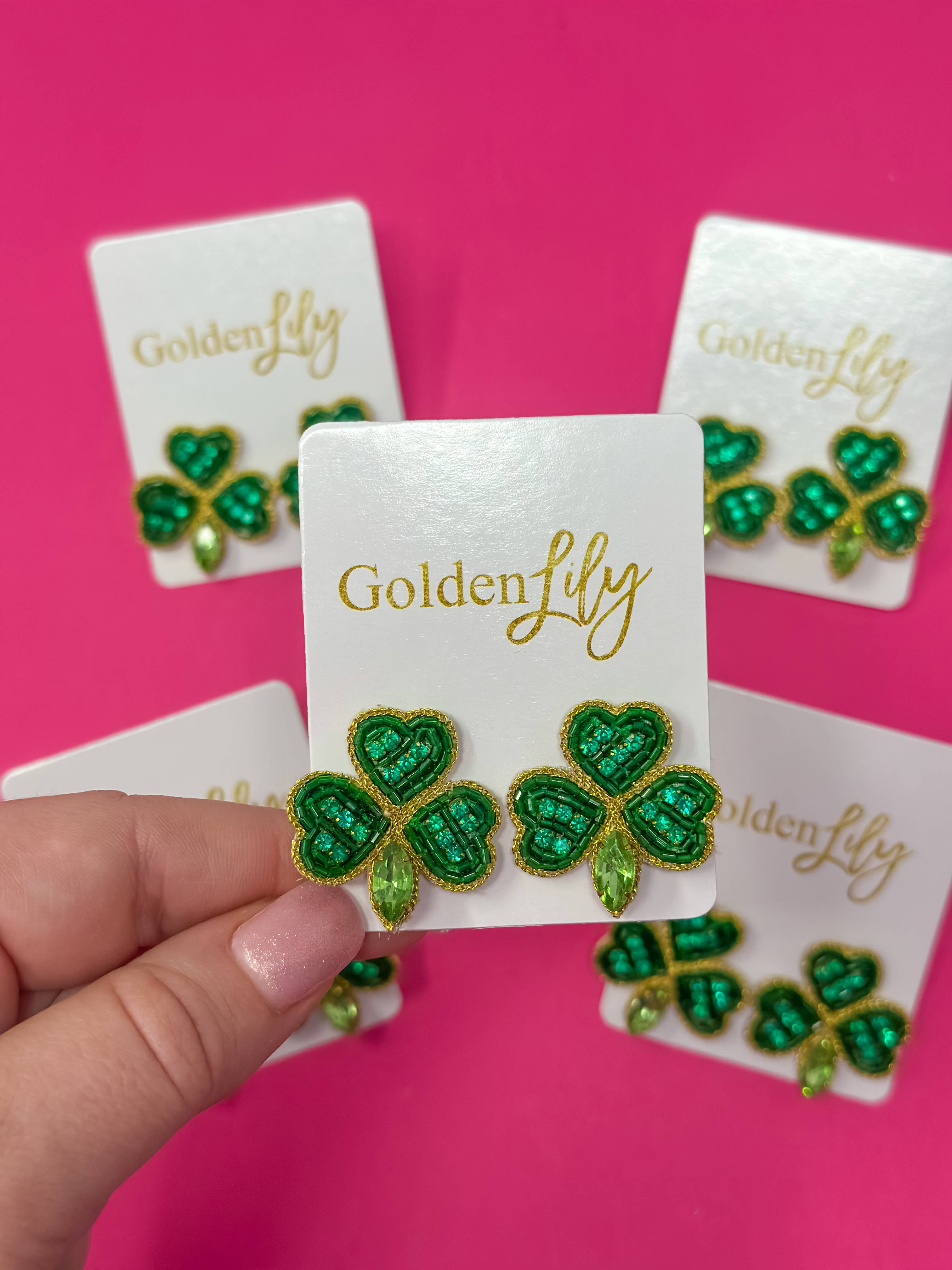These seed bead and rhinestone clover earrings are perfect to wear for St. Patrick's Day.