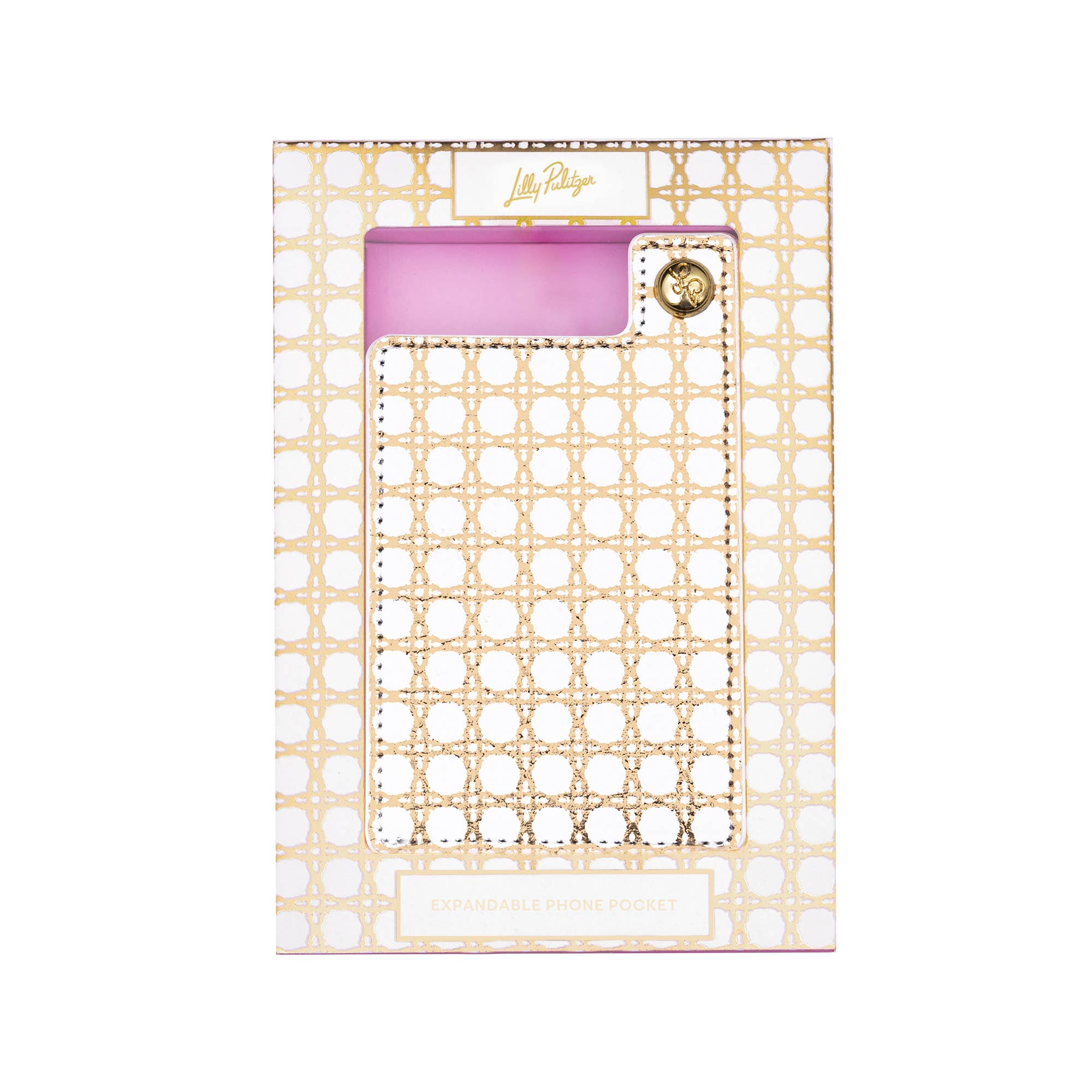 Lilly Pulitzer Expandable Phone Pocket - Gold Metallic Caning