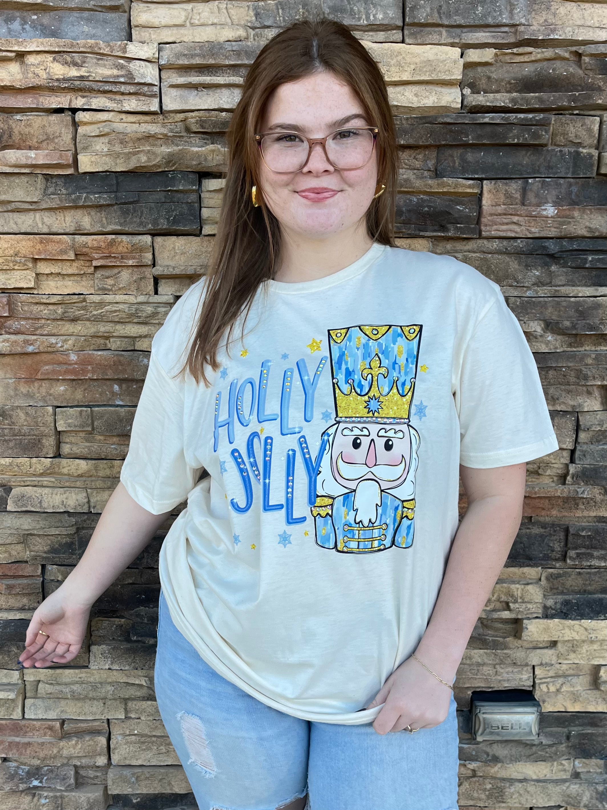 Get your holly jolly on in this festive tee that captures all the warmth and whimsy of the season. Whether you're decking the halls or just spreading good vibes, this shirt lets your holiday spirit shine. Comfortable enough for all your seasonal adventures—from cookie decorating marathons to cozy nights by the fire. Wear your joy this winter.
