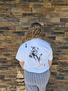 Slip into the Roxanne Tee and add a little humor to your wardrobe. This playful graphic top is sure to make a statement and bring a smile to your face. With its quirky design, you'll stand out in a crowd and keep things light and fun. Get ready to turn some heads with this unique addition to your collection.