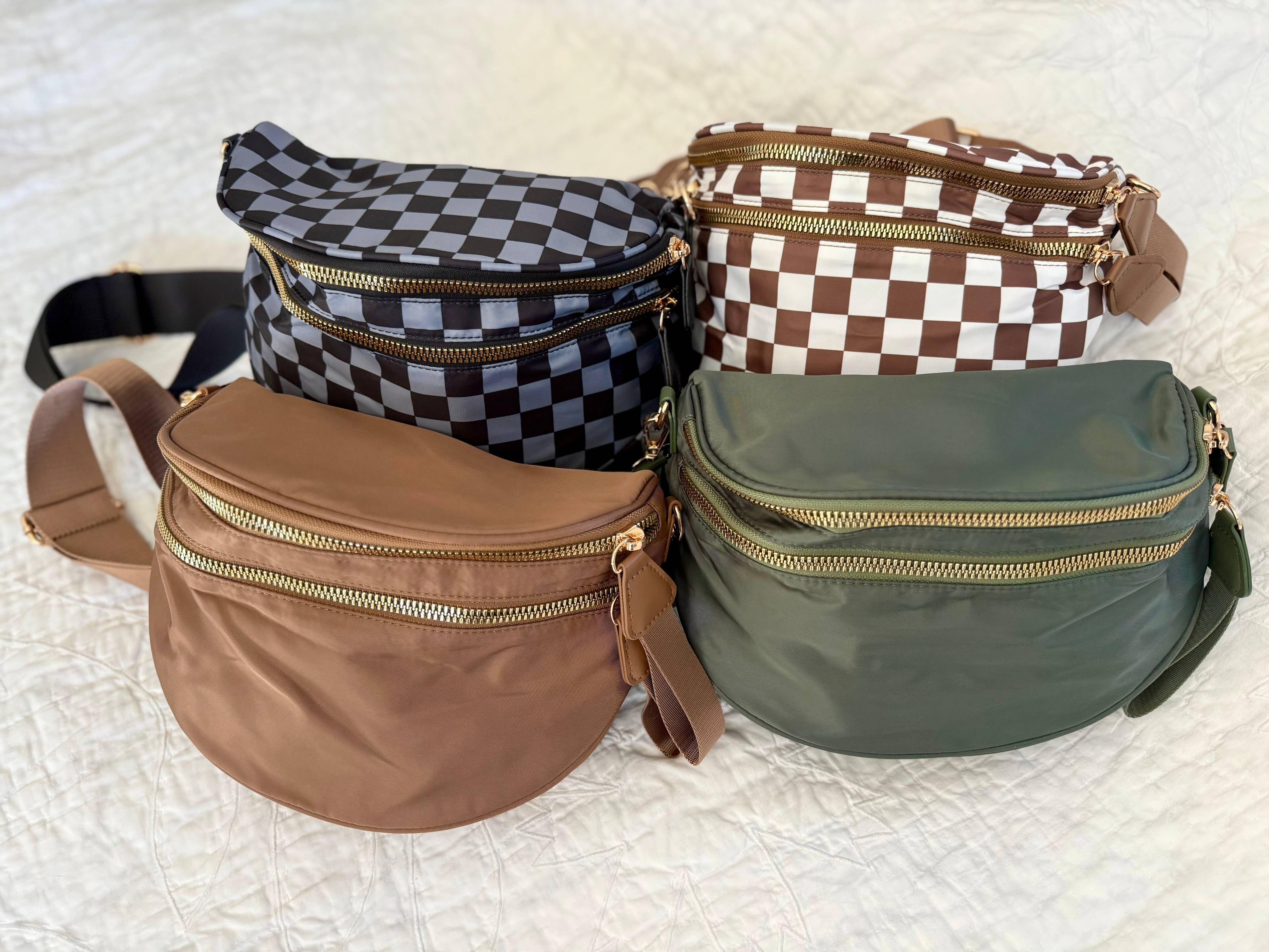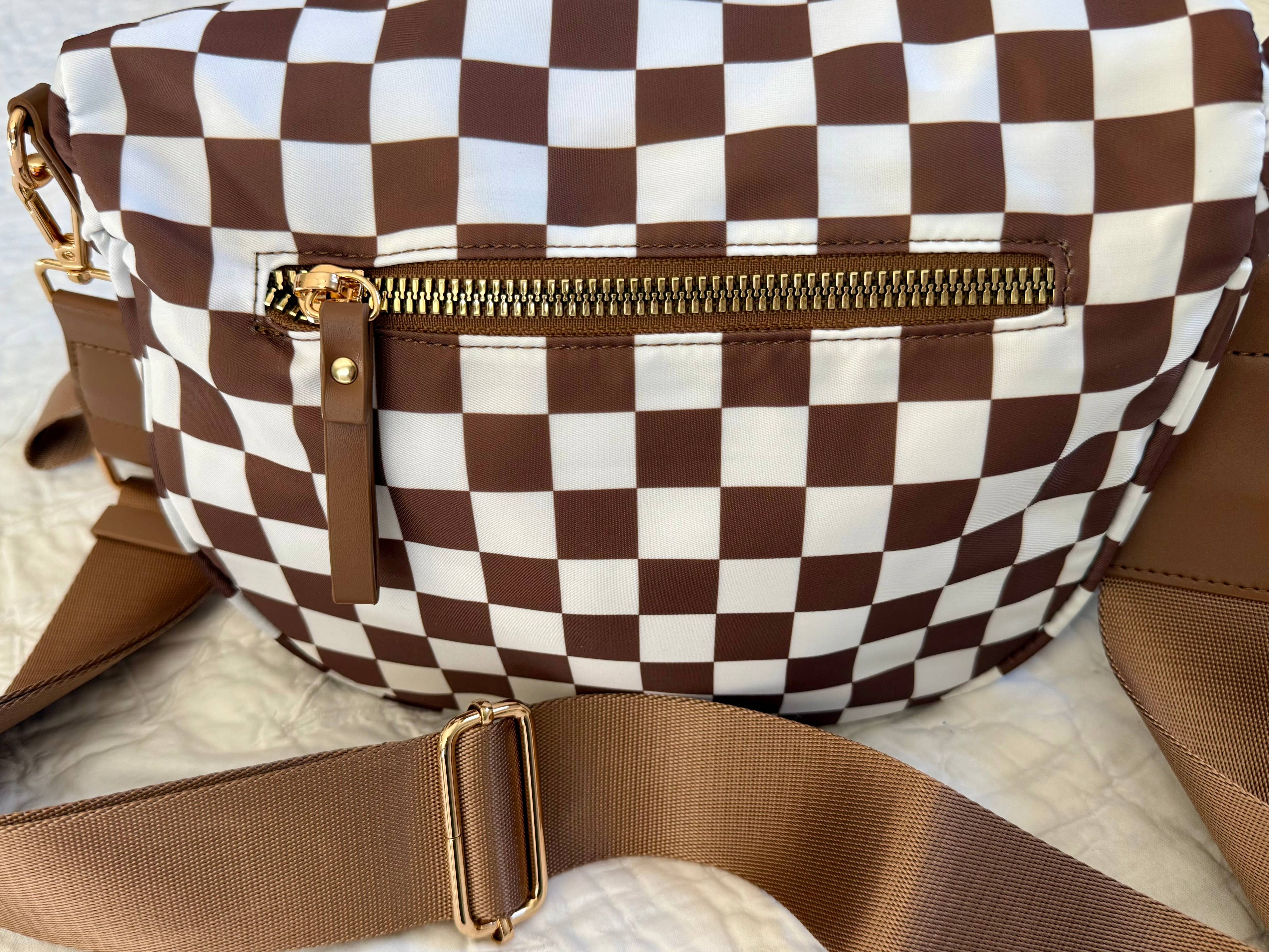 Farah Fanny Pack Crossbody - Espresso Checkered