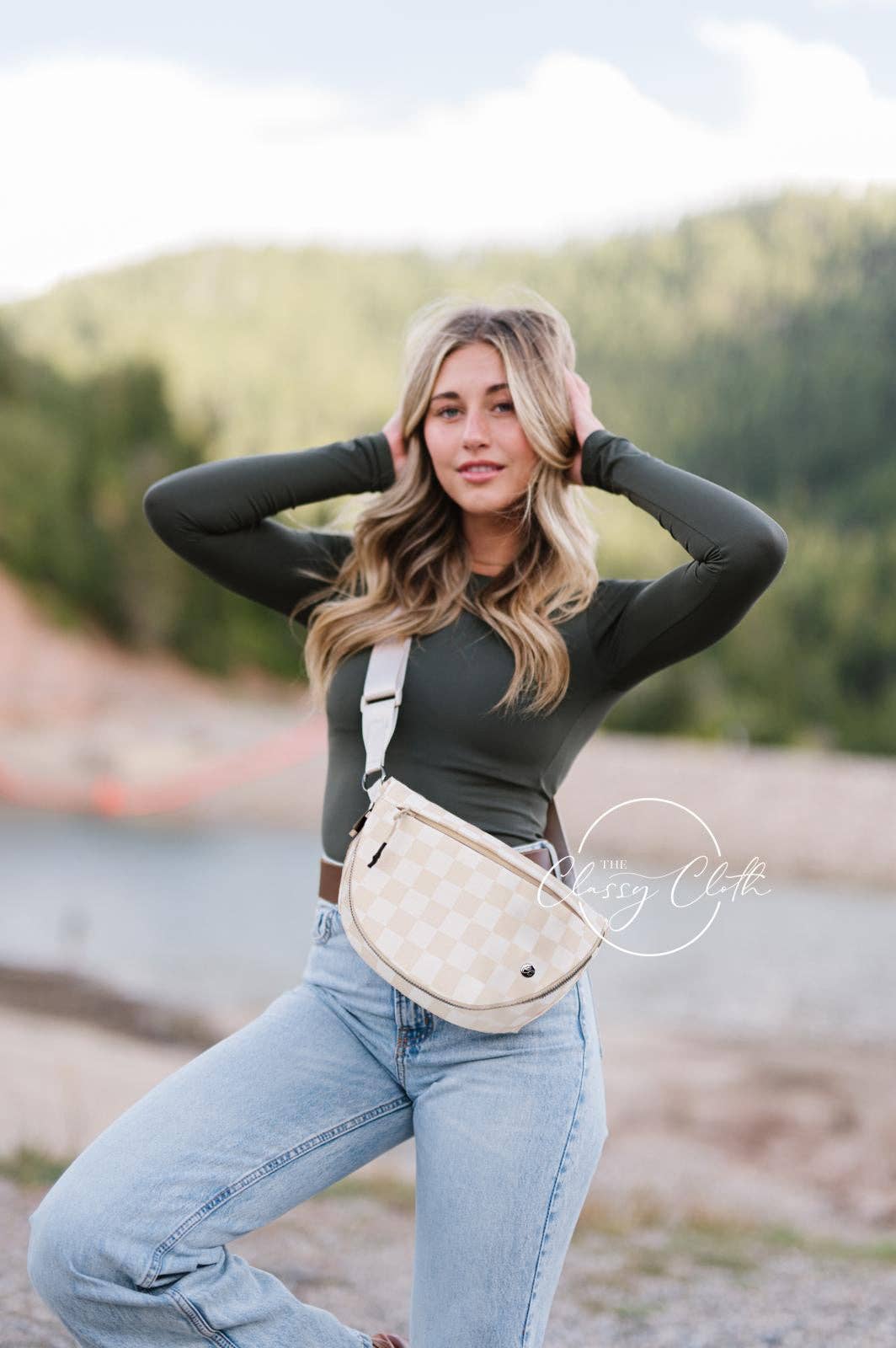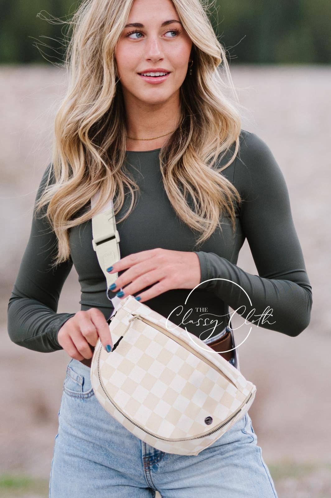 Margot Moon Belt Bag - Beige Checkered
