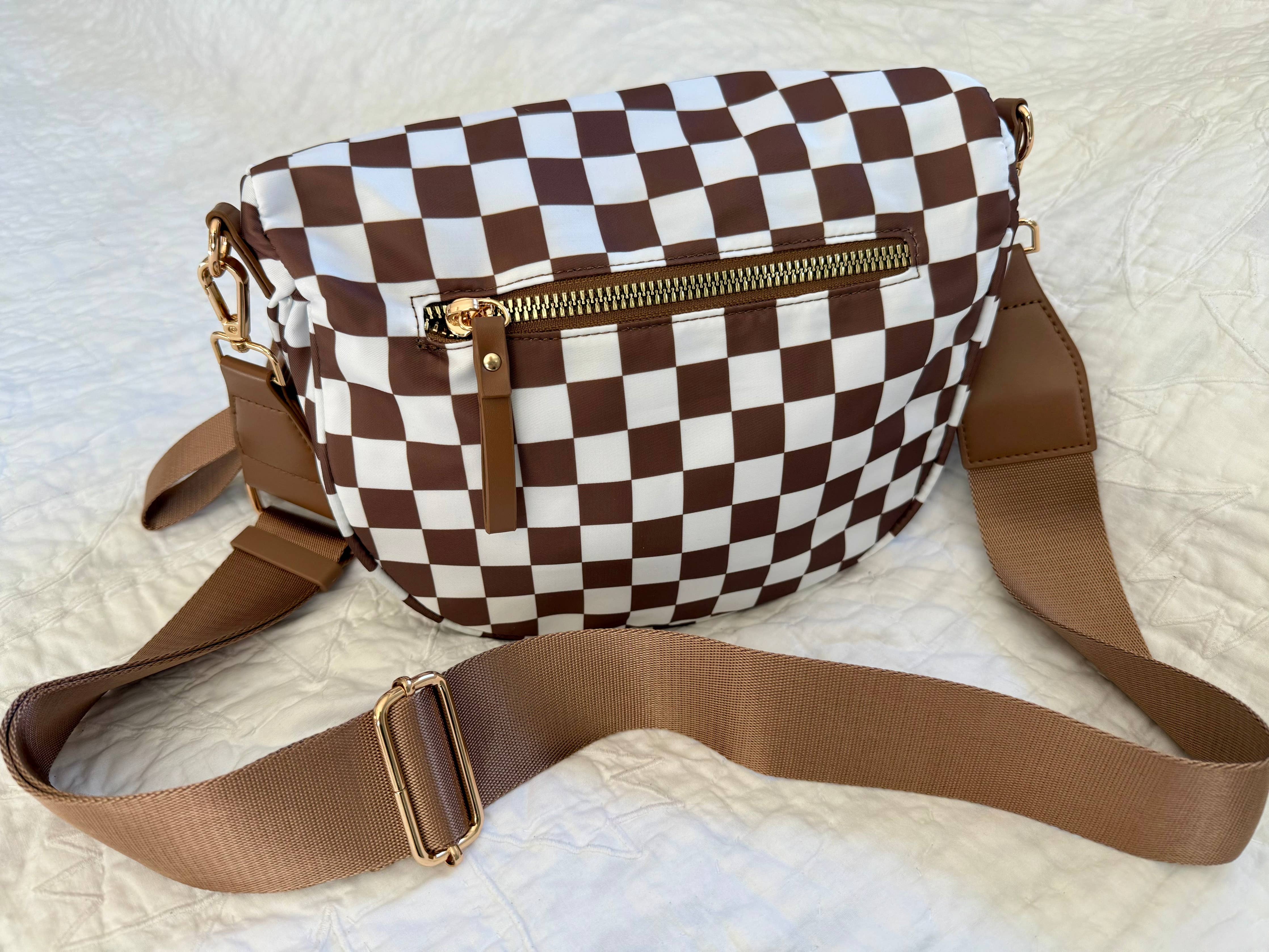 Farah Fanny Pack Crossbody - Espresso Checkered