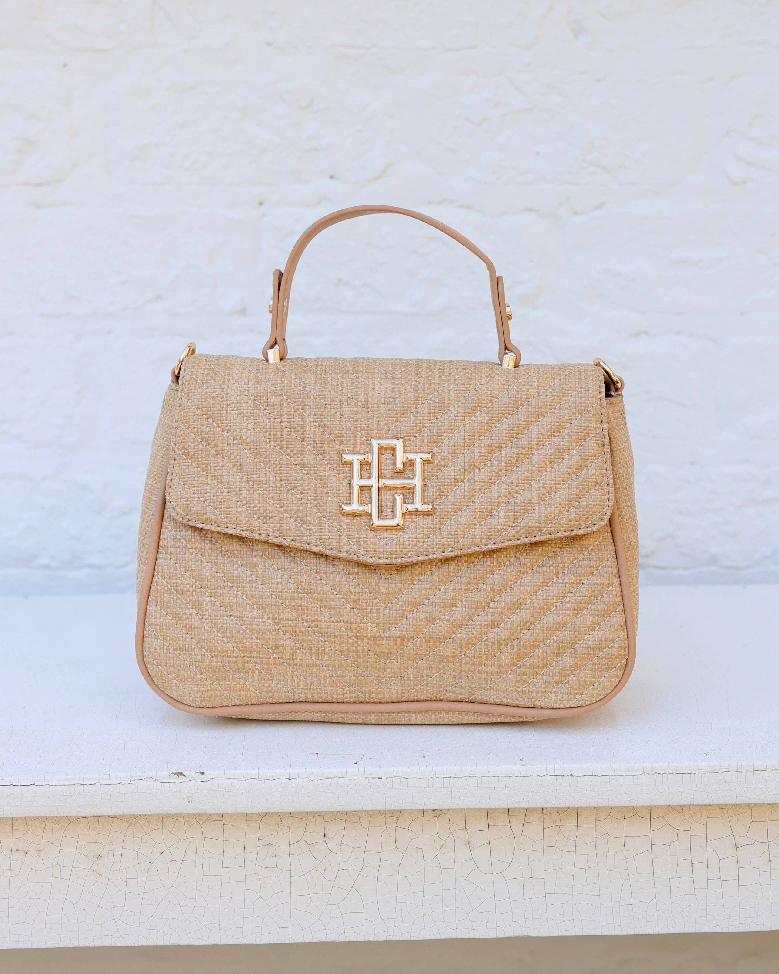 The Sinclair Quilted Crossbody in Natural VQ features beautiful woven fabric with distinctive V quilting. Switch between crossbody and handbag styling with the removable chain strap and top handle. Magnetic closure secures your essentials while the bold logo flap makes an instant statement. Versatile elegance redefined.