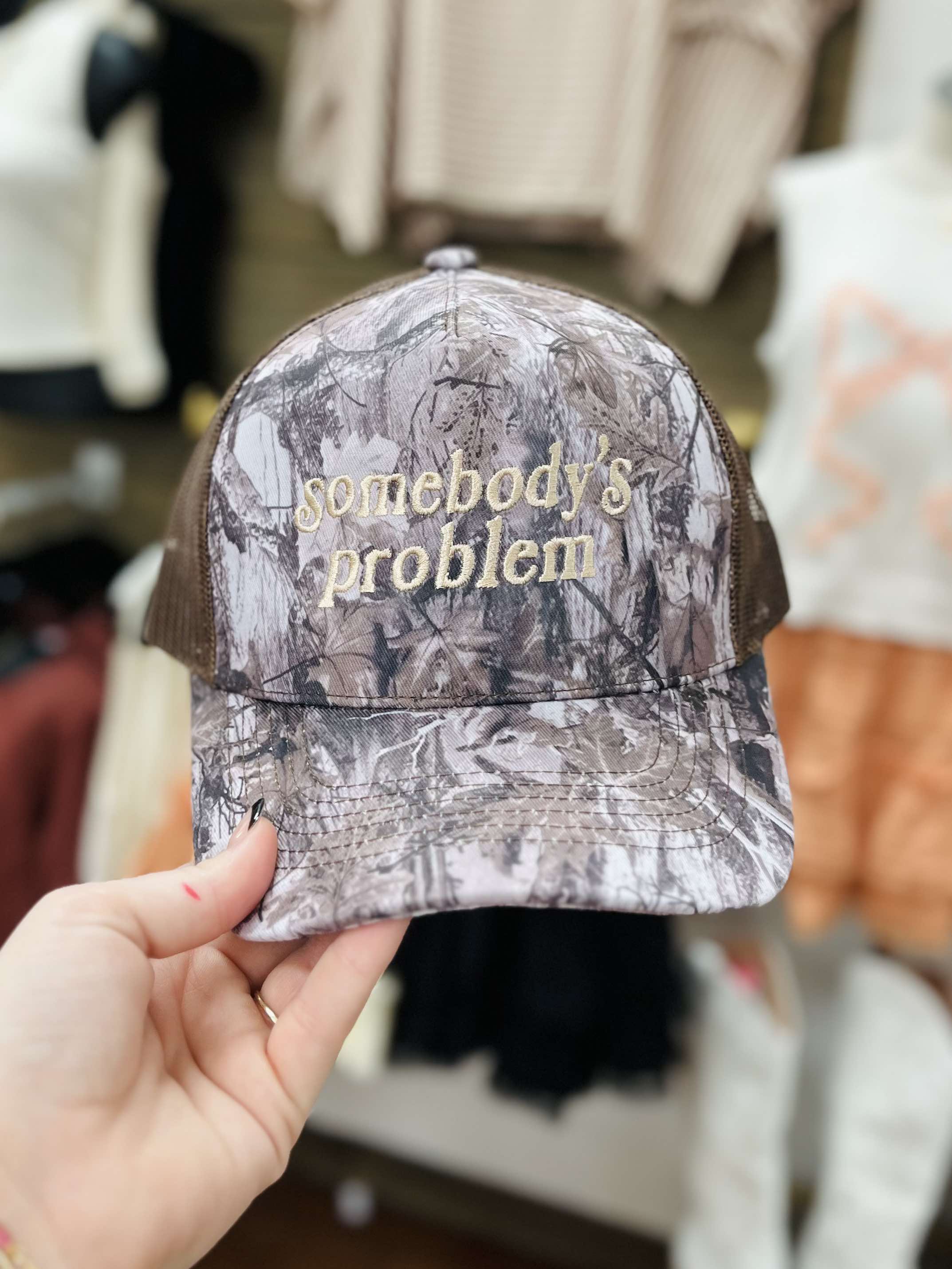 Add a touch of attitude to your casual look with the Somebody's Problem Camo Hat. Featuring an adjustable snapback for the perfect fit and breathable mesh panels to keep you cool, this hat blends comfort with bold style. Whether you’re feeling sassy or embracing your country roots, it’s the ideal accessory to show off your personality.