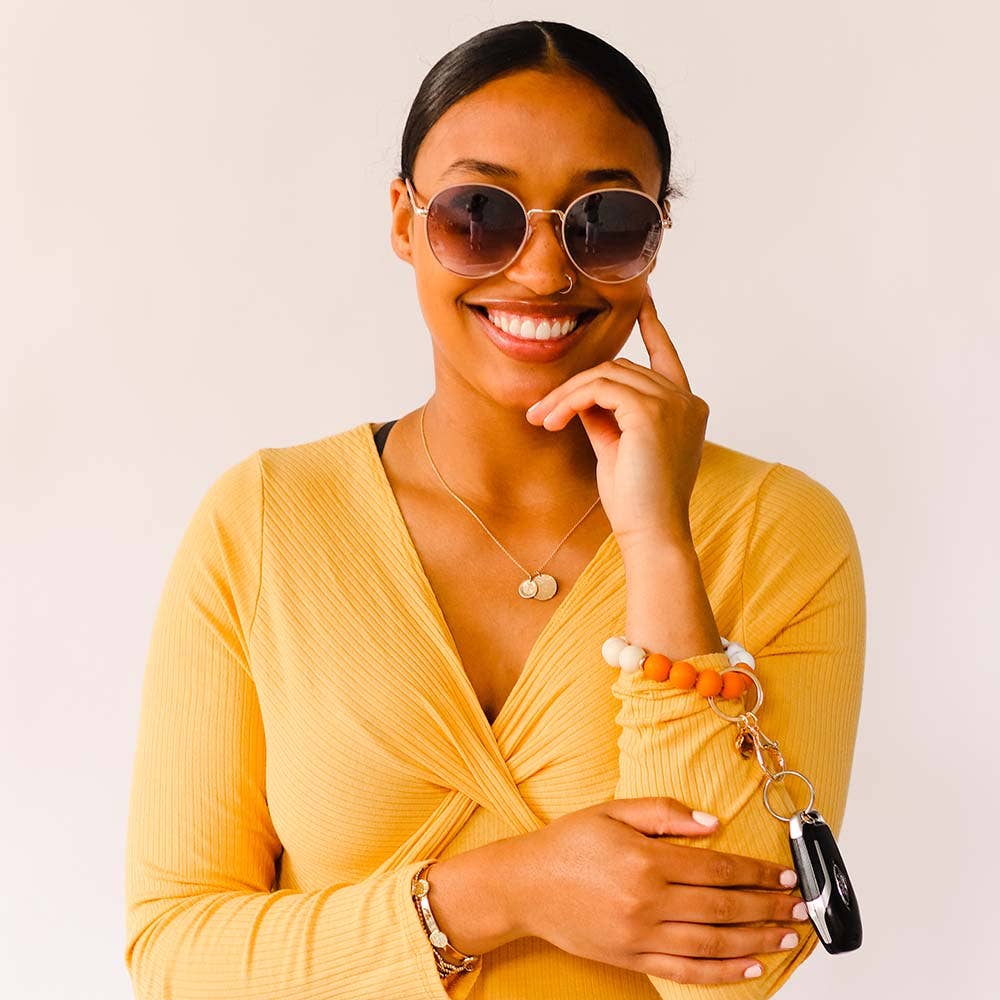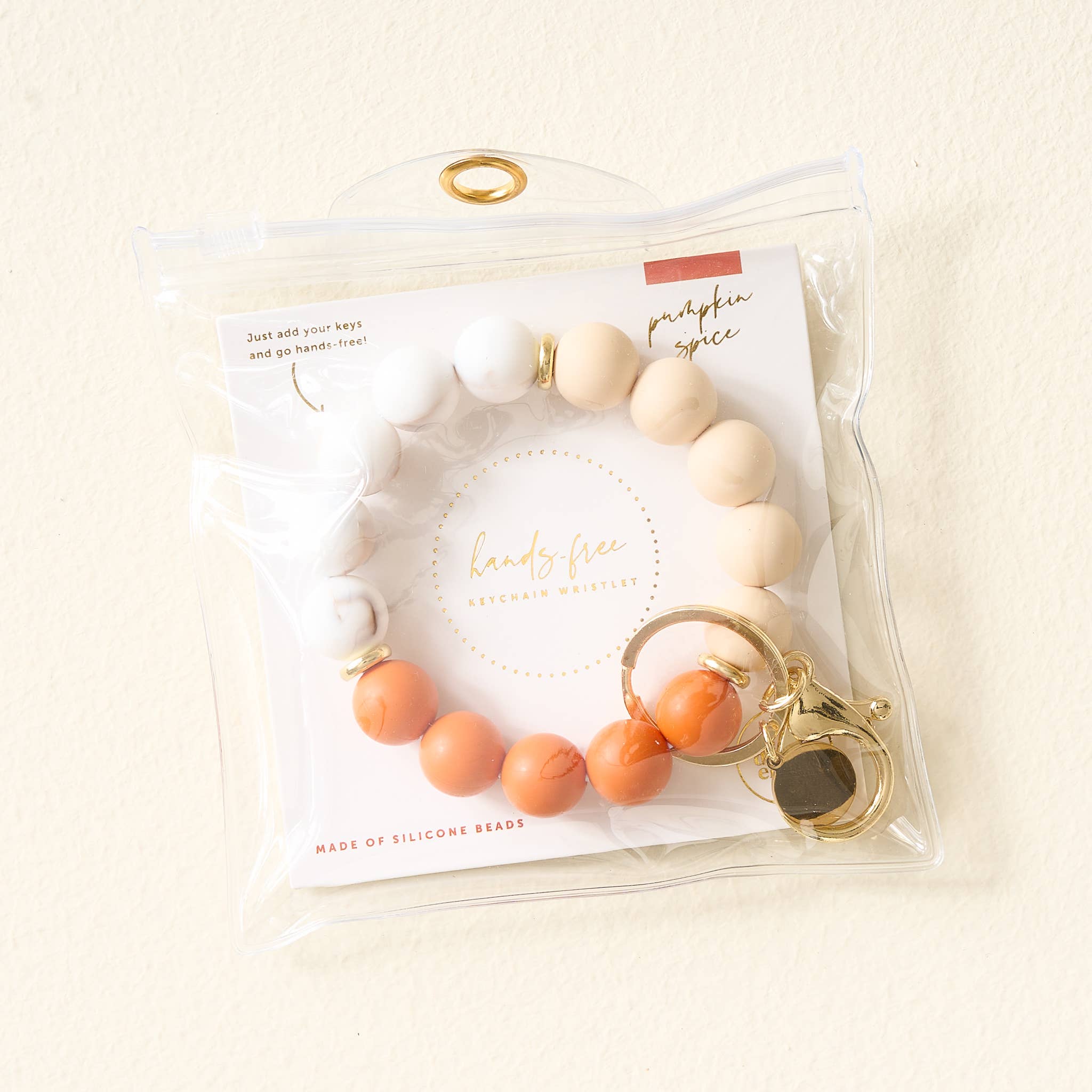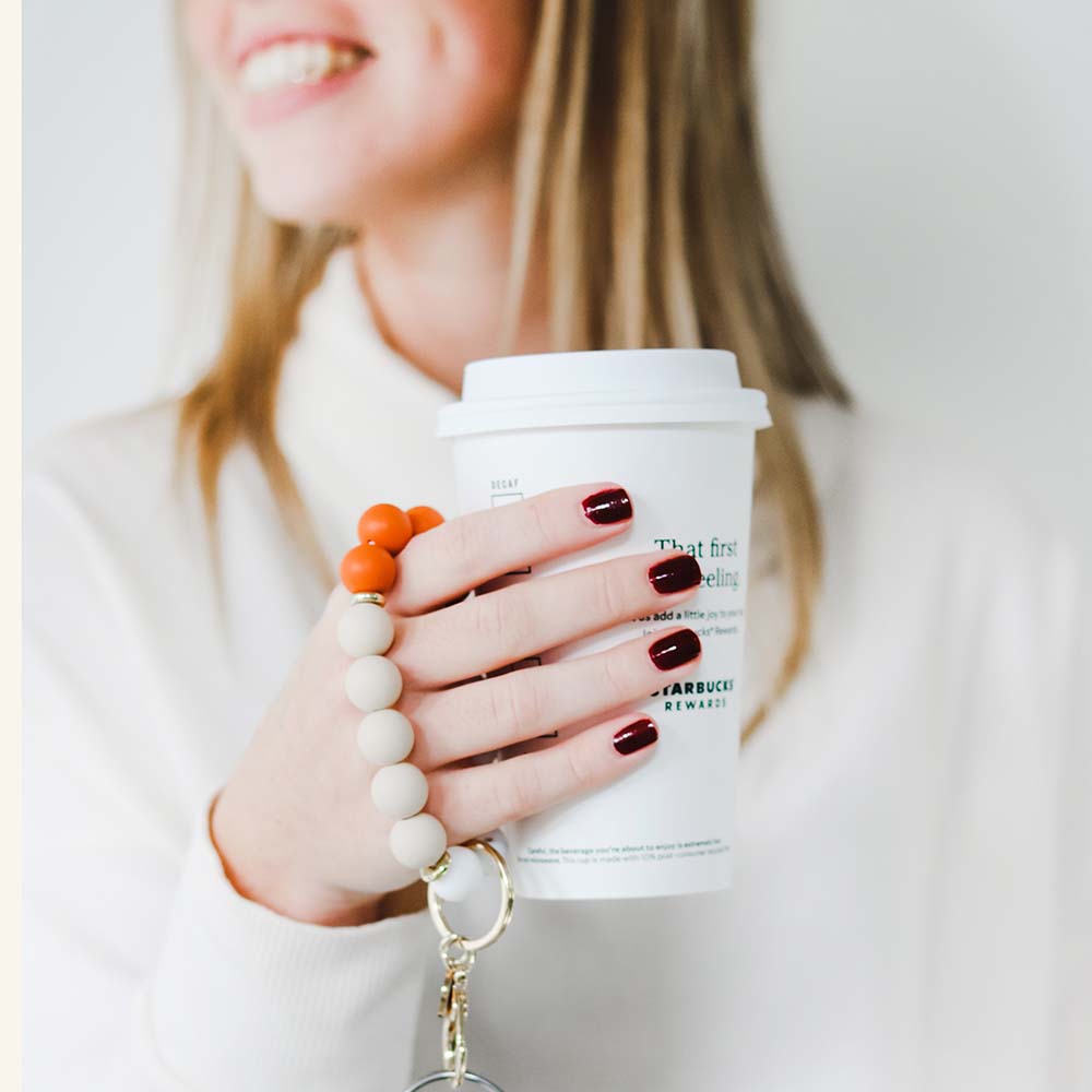 Hands-Free Silicone Beaded Keychain Wristlet - Pumpkin Spice