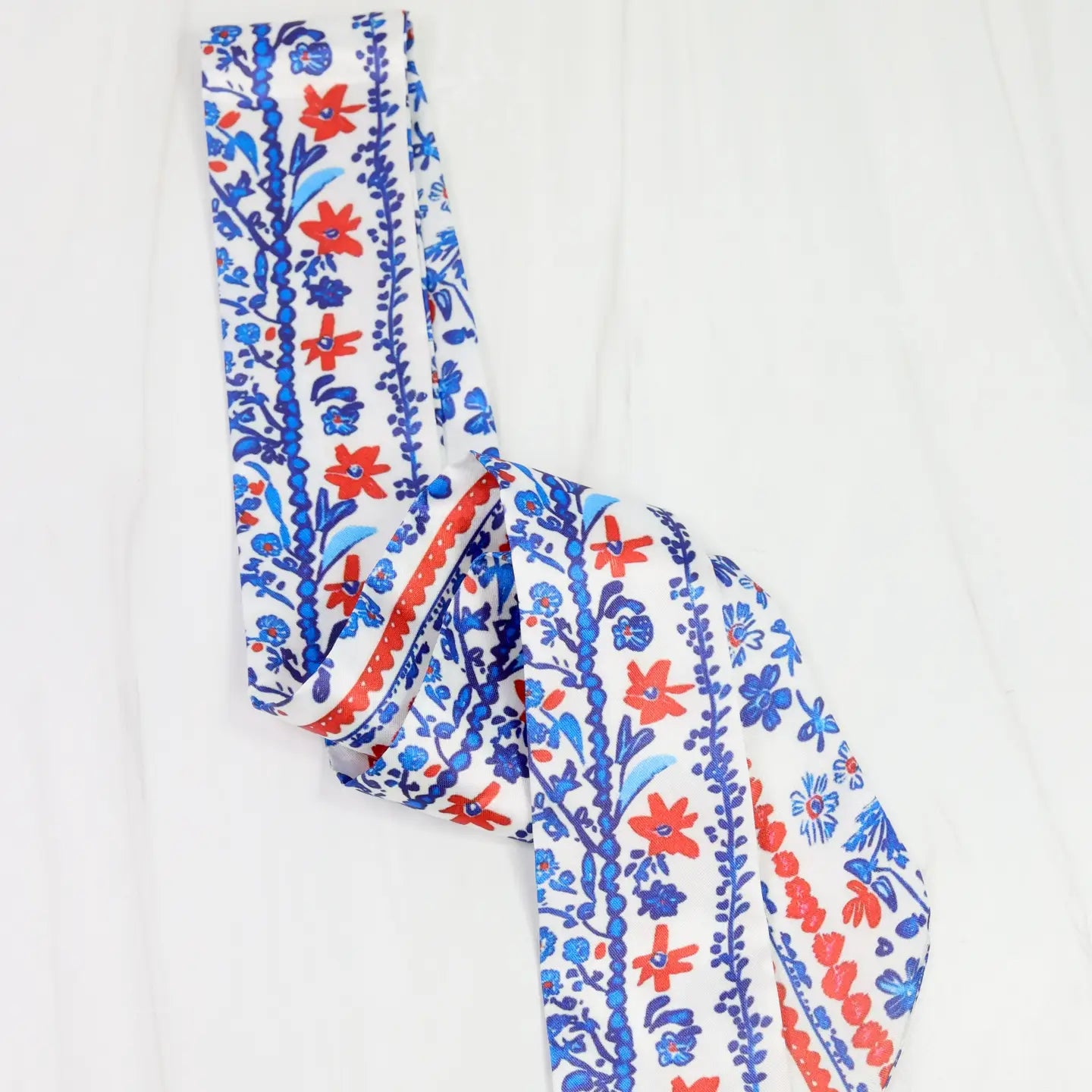 Add a playful twist to your look with the Caroline Hill Serafina Scarf. Its silky-smooth satin texture makes it perfect for tying around your neck, wrist, bag, or even your cowgirl boots, instantly lifting any outfit with a splash of fun and style.