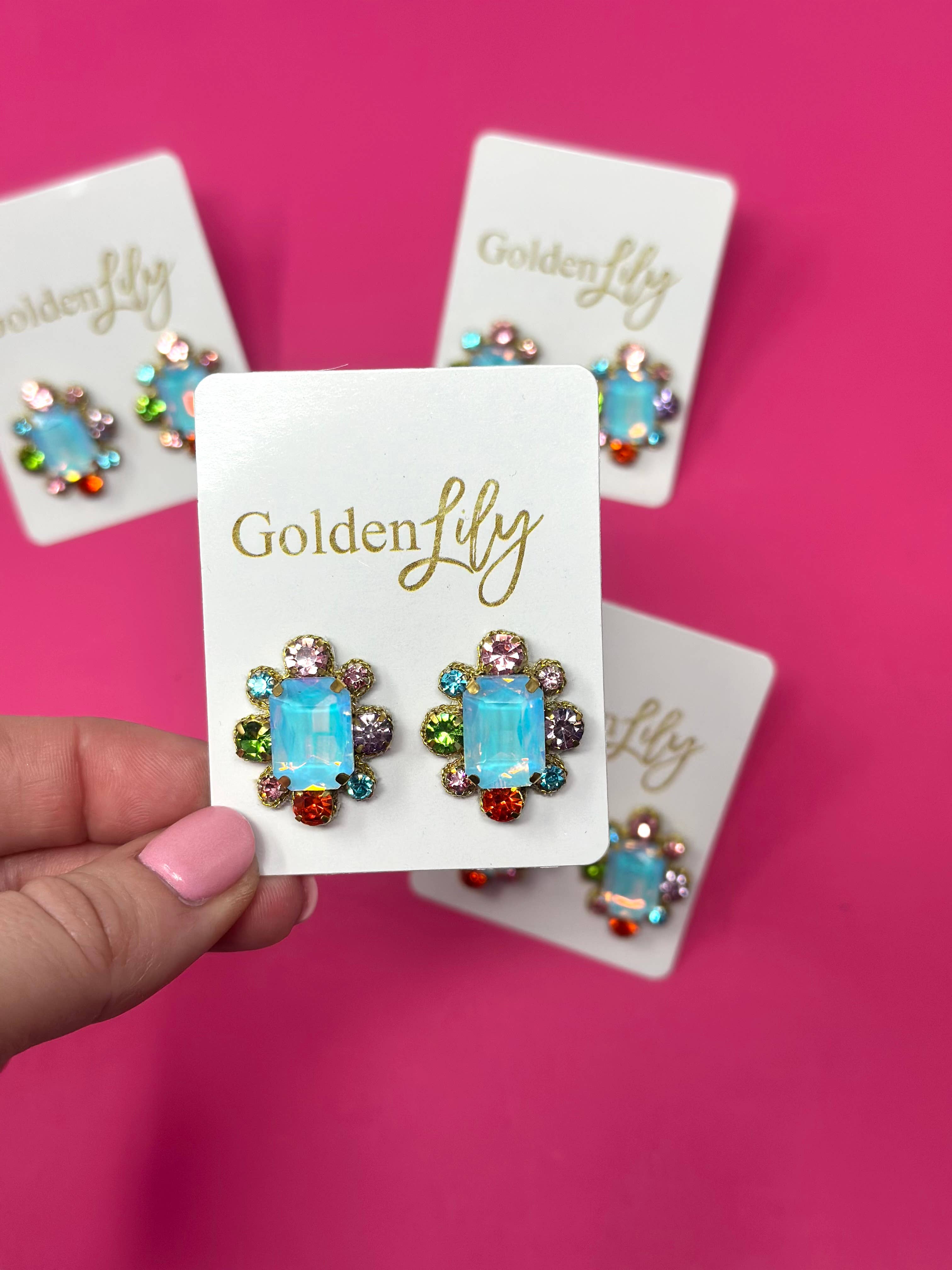 Make a statement in these beautiful, bedazzled stud earrings!