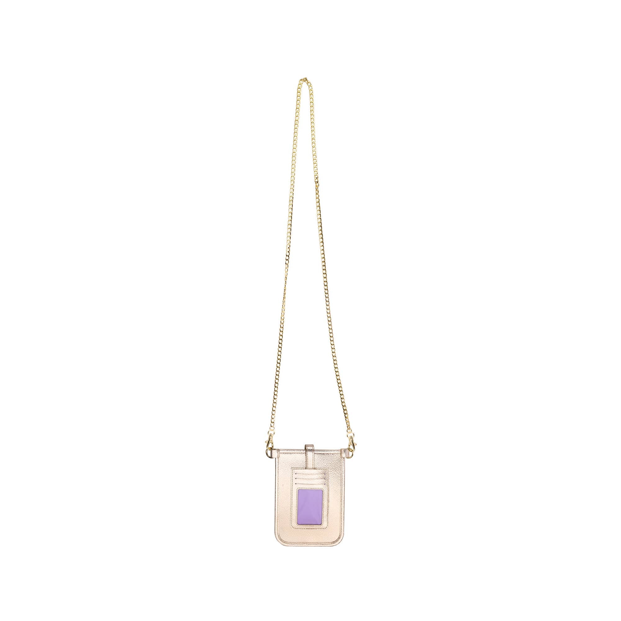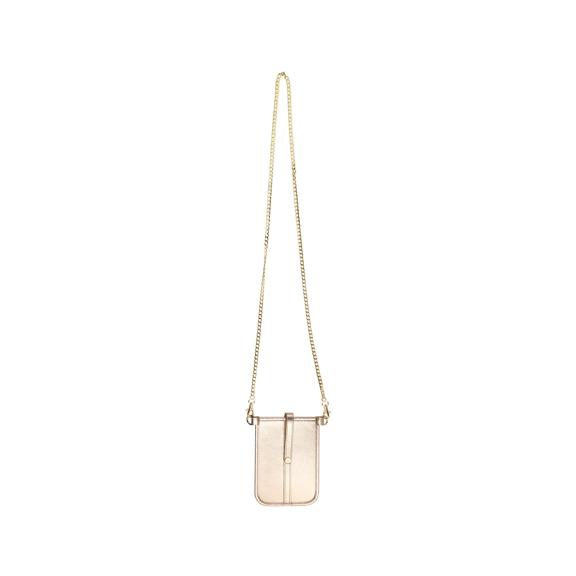 Keep your essentials stylish and handy with this crossbody phone case featuring a gold chain strap, 2 card slots, an ID window, and a logo gold snap to secure your phone.