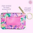 No more searching in the bottom of your bag for your student/work badge! Choose your favorite pattern and keep your ID and extra cards tucked away in this handy little zipper pouch. This cute keychain wallet is featured in the multicolored print by Lilly Pulitzer, It Was All A Dream, with a metallic gold logo accent. Made of polyester, this travel wallet is perfect for kids, teens, and adults! This small zipper pouch makes the perfect back to school or travel accessory to ensure your ID cards stay handy.