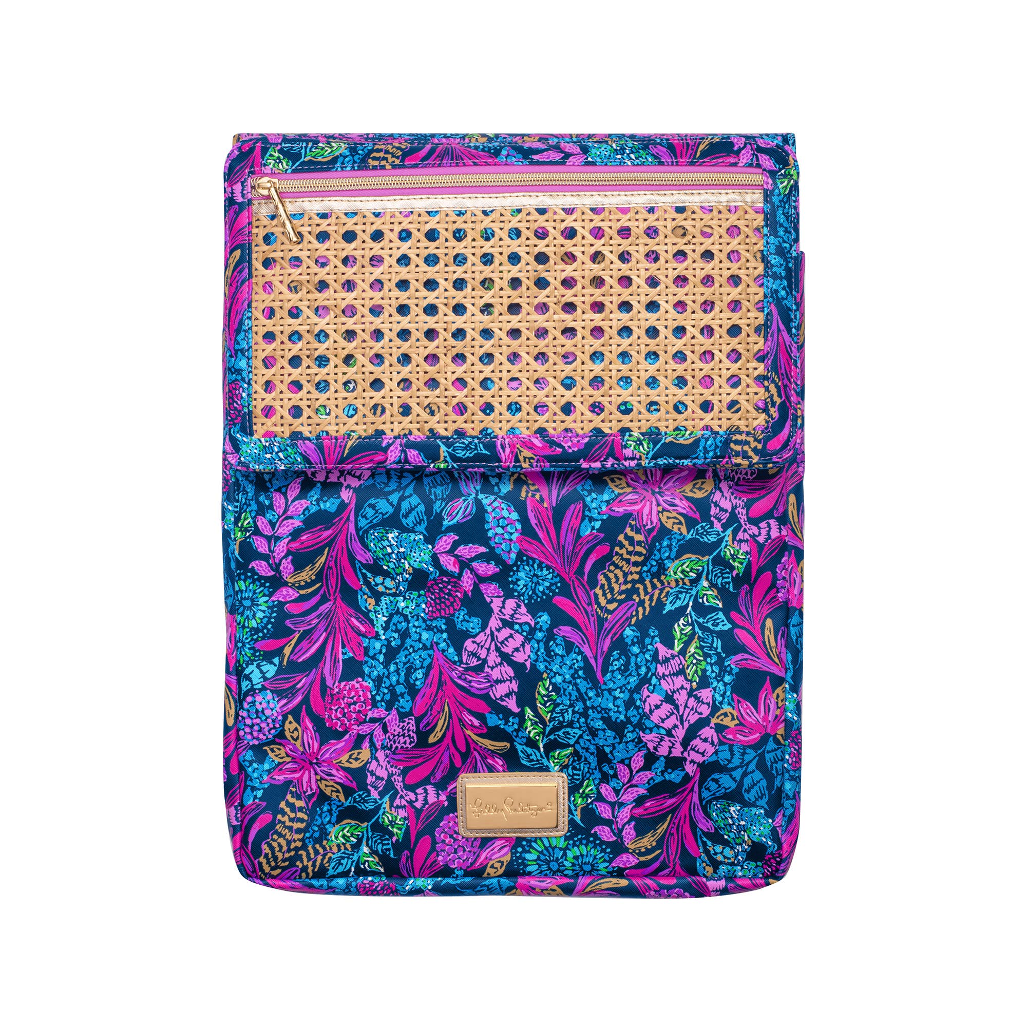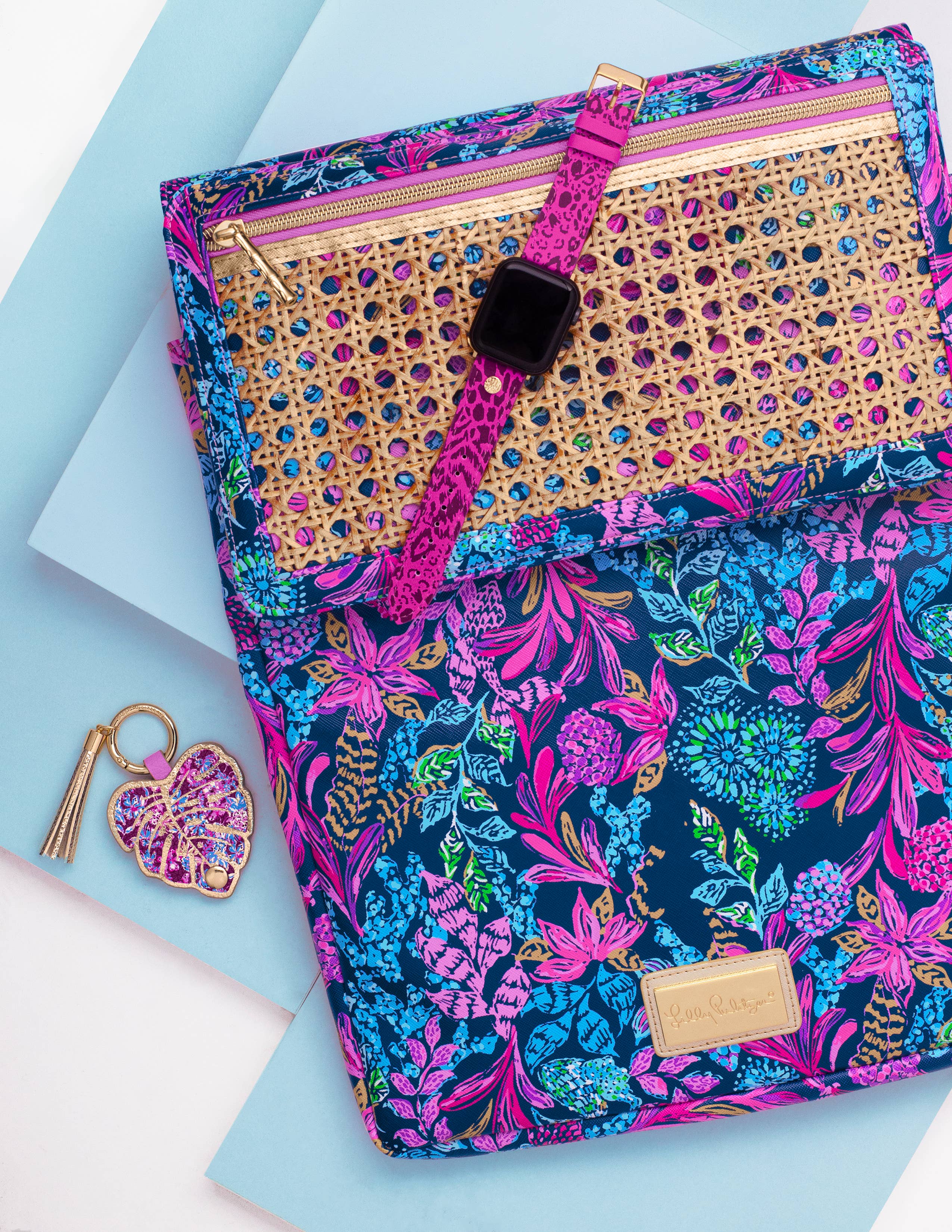 Keep your devices safe and sound in this stylish tech pouch set by Lilly Pulitzer. The large case features a soft interior lining that allows laptops to easily glide in/out and is lightly padded for added security and protection as you travel. Plus, it has a handy zip pouch built into the front that's perfect for storing your charging cords, earbuds, and other must-have accessories.