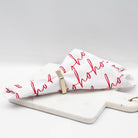 Add pizzaz to your holiday tablescape with our fun and festive Christmas napkin collection! The HoHoHo napkin features red script on a white background.18x18