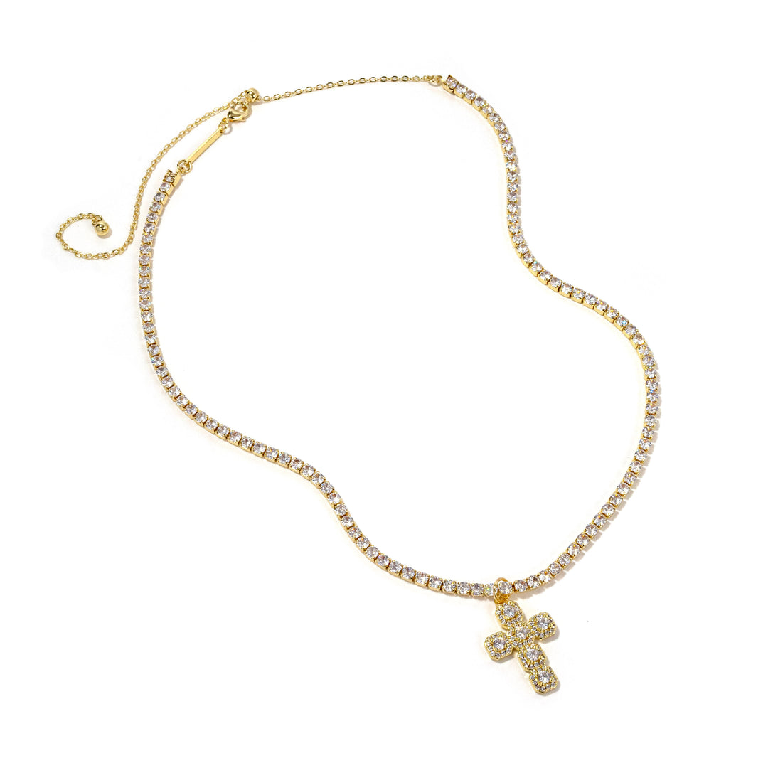 Elevate your everyday look with the Erimish Bubble Cross Necklace, featuring intricate pave crystals that catch the light beautifully. This delicate cross pendant combines timeless elegance with modern sparkle, making it an ideal choice for layering or wearing solo. Perfect for adding a touch of refined glamour to casual and formal occasions alike.