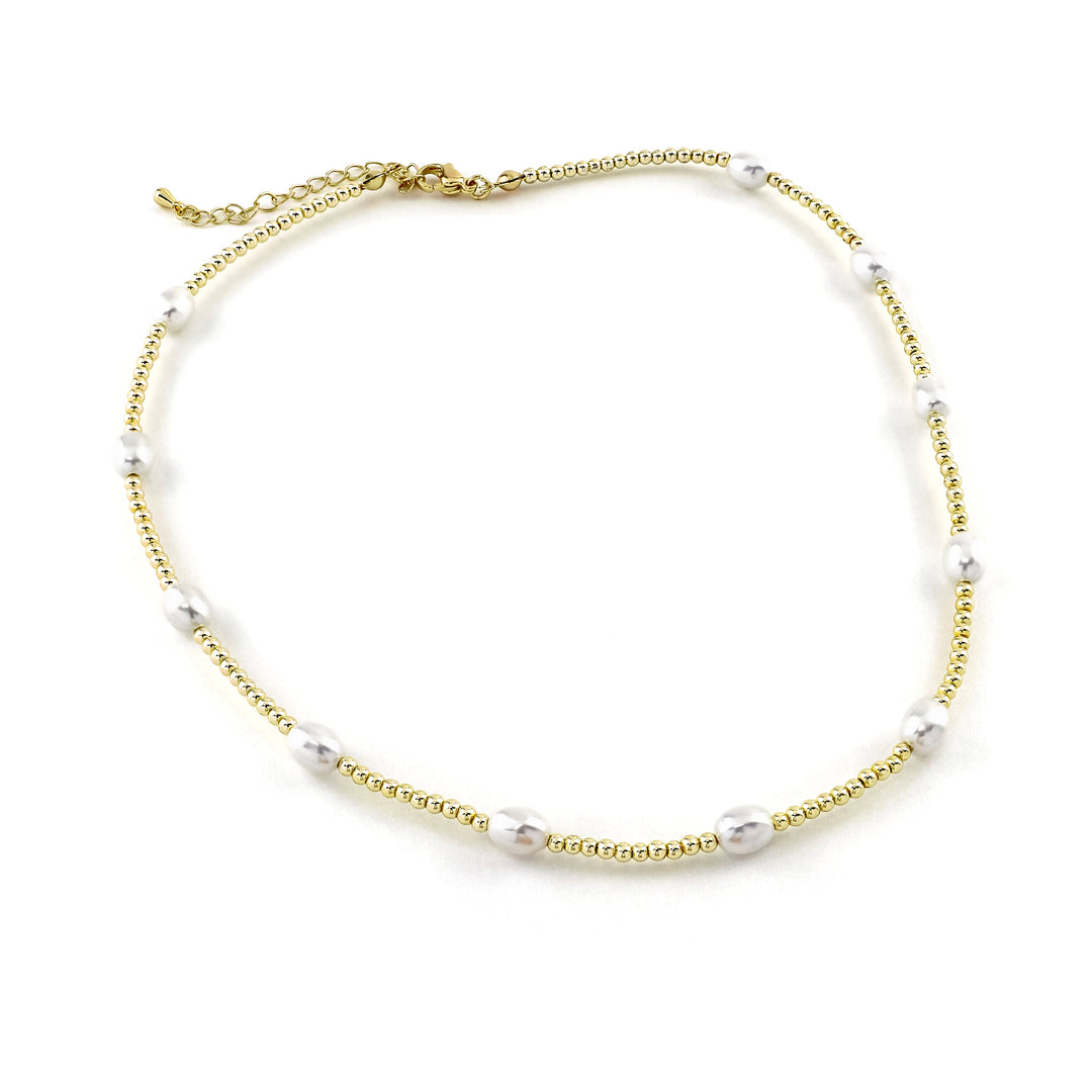 Discover understated luxury with the Erimish Hanah Necklace, featuring lustrous pearls complemented by delicate gold accents. This versatile piece effortlessly transitions from everyday wear to special occasions, adding refined elegance to any ensemble. The timeless design ensures lasting appeal, making it a cherished addition to your jewelry collection. Perfect for layering or wearing solo, this necklace brings sophistication and grace to your personal style.