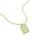 Elevate your everyday look with the Erimish Hopscotch Necklace, featuring a vibrant checkerboard pendant that adds instant character to any ensemble. The playful design is beautifully framed in polished gold and suspended from a delicate chain, creating a perfect balance between contemporary elegance and retro charm. Whether you're dressing up or keeping it casual, this necklace is a versatile statement piece that celebrates individuality and style.