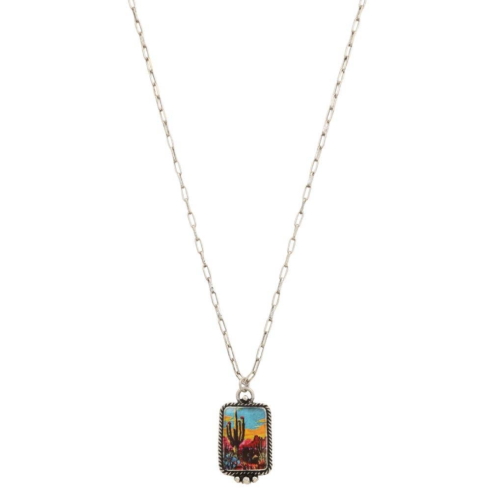 Rock that desert vibes with this charming cactus pendant necklace. The 18" chain showcases a beautifully crafted cactus design, bringing a playful southwestern flair to any outfit.
