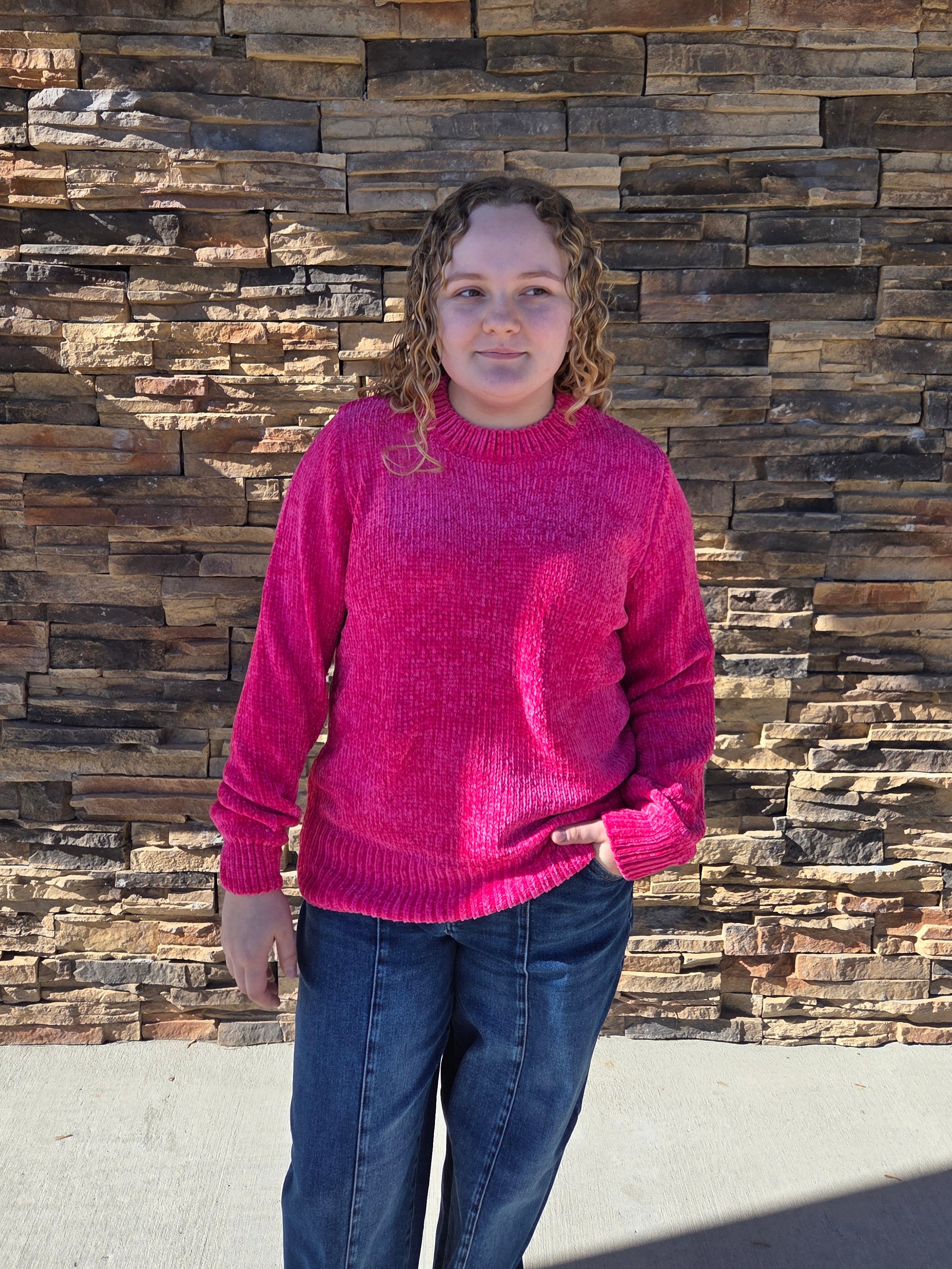 The Abbie Sweater is your cozy companion for effortless style. This charming piece features a classic round neckline and statement balloon sleeves that add a playful twist to your everyday wardrobe. Crafted from soft chenille fabric, it delivers that luxurious, touchable comfort you'll want to live in. Perfect for layering or wearing solo, this sweater brings warmth and personality to any outfit. Whether you're keeping it casual or dressing it up, the Abbie is ready to become your new favorite go-to piece.