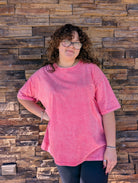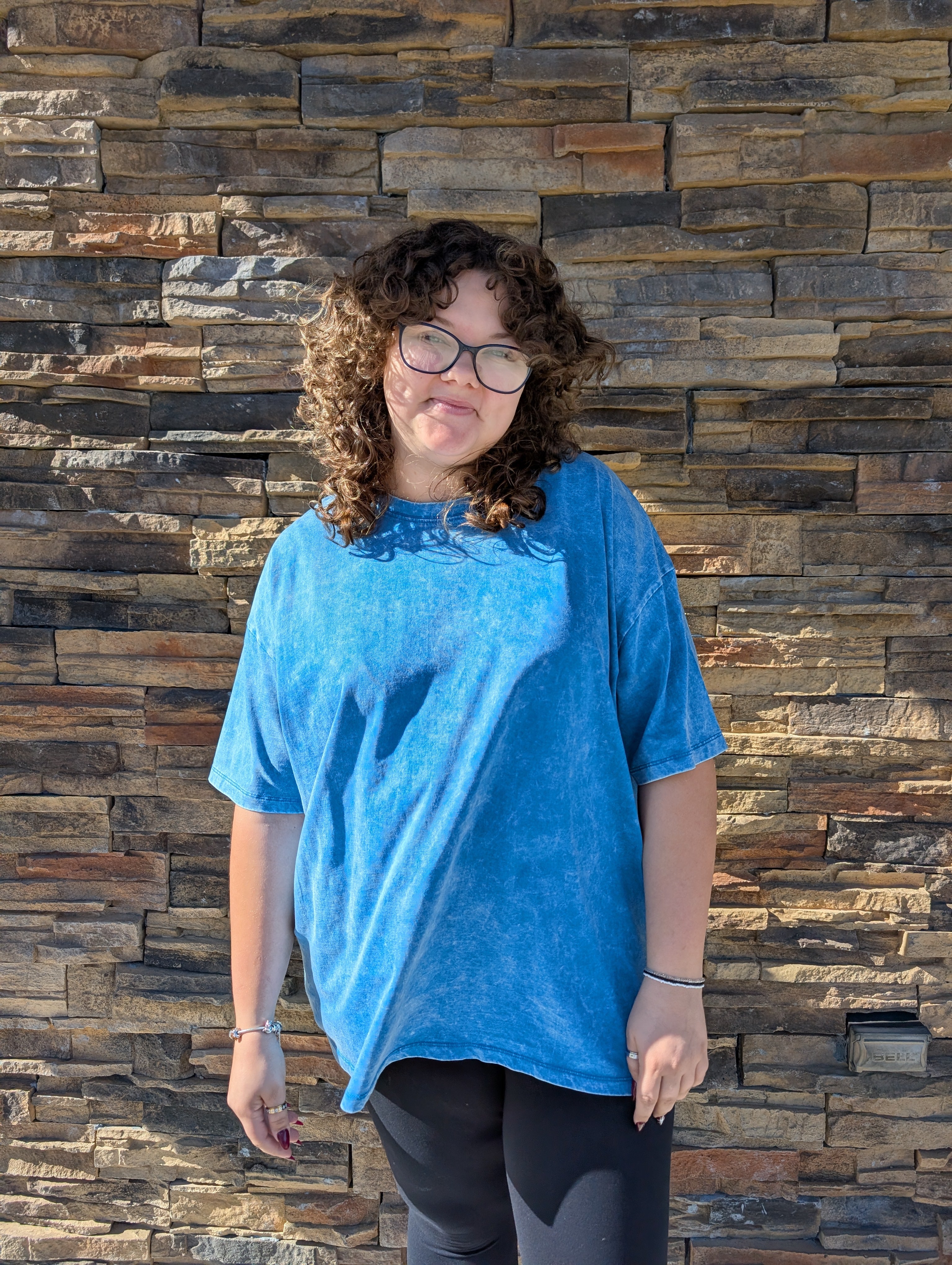 ACID WASH COTTON DROP SHOULDER OVERSIZED LONGLINE BOYFRIEND BOX TEE