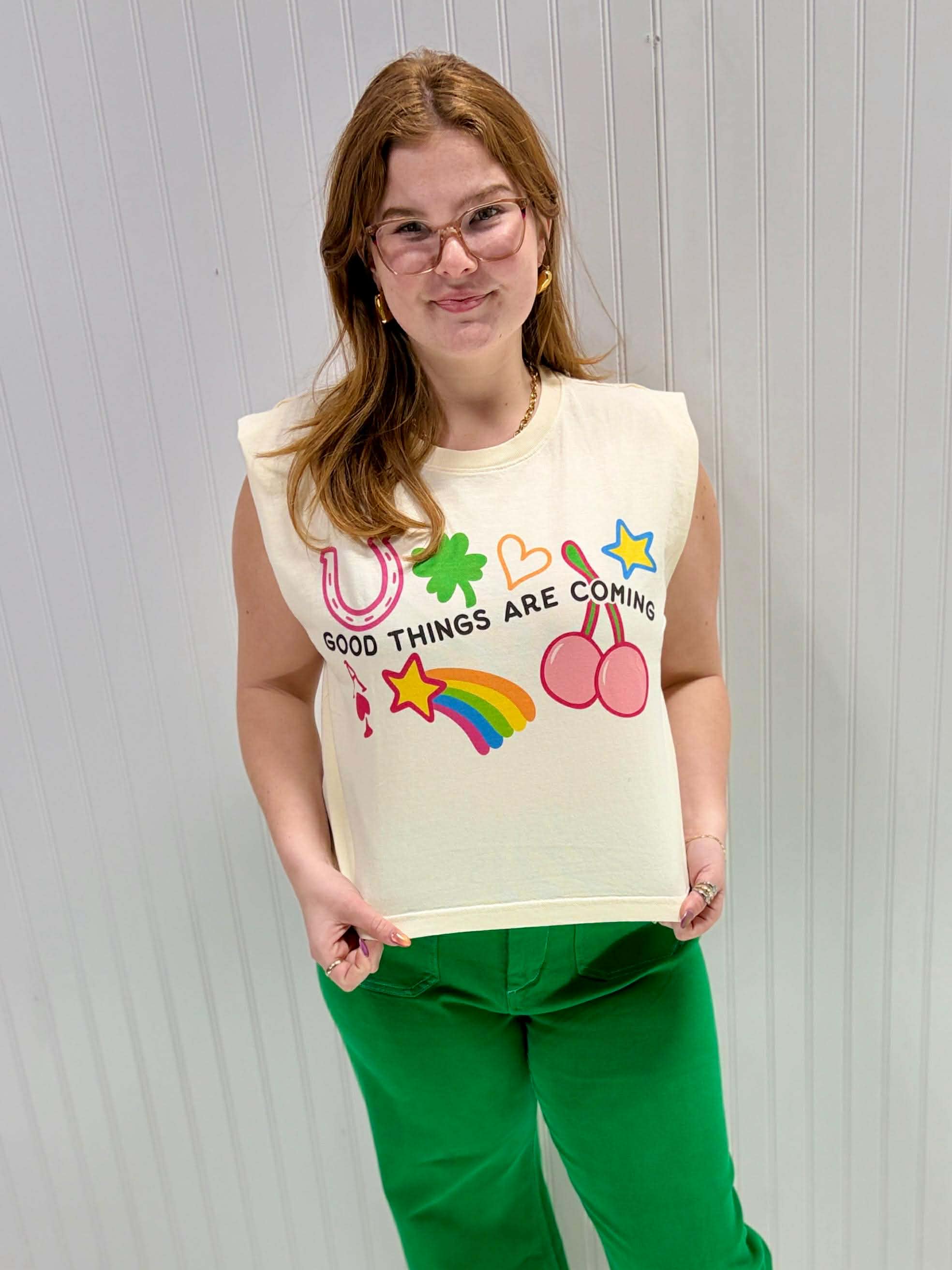 Introducing the Mallory Crop Tee - a playful twist on the traditional tank top! With a cropped cut and relaxed fit, this tee is perfect for any casual occasion. Show off your fun and quirky side while staying comfortable and stylish. (Crop it like it's hot!)
