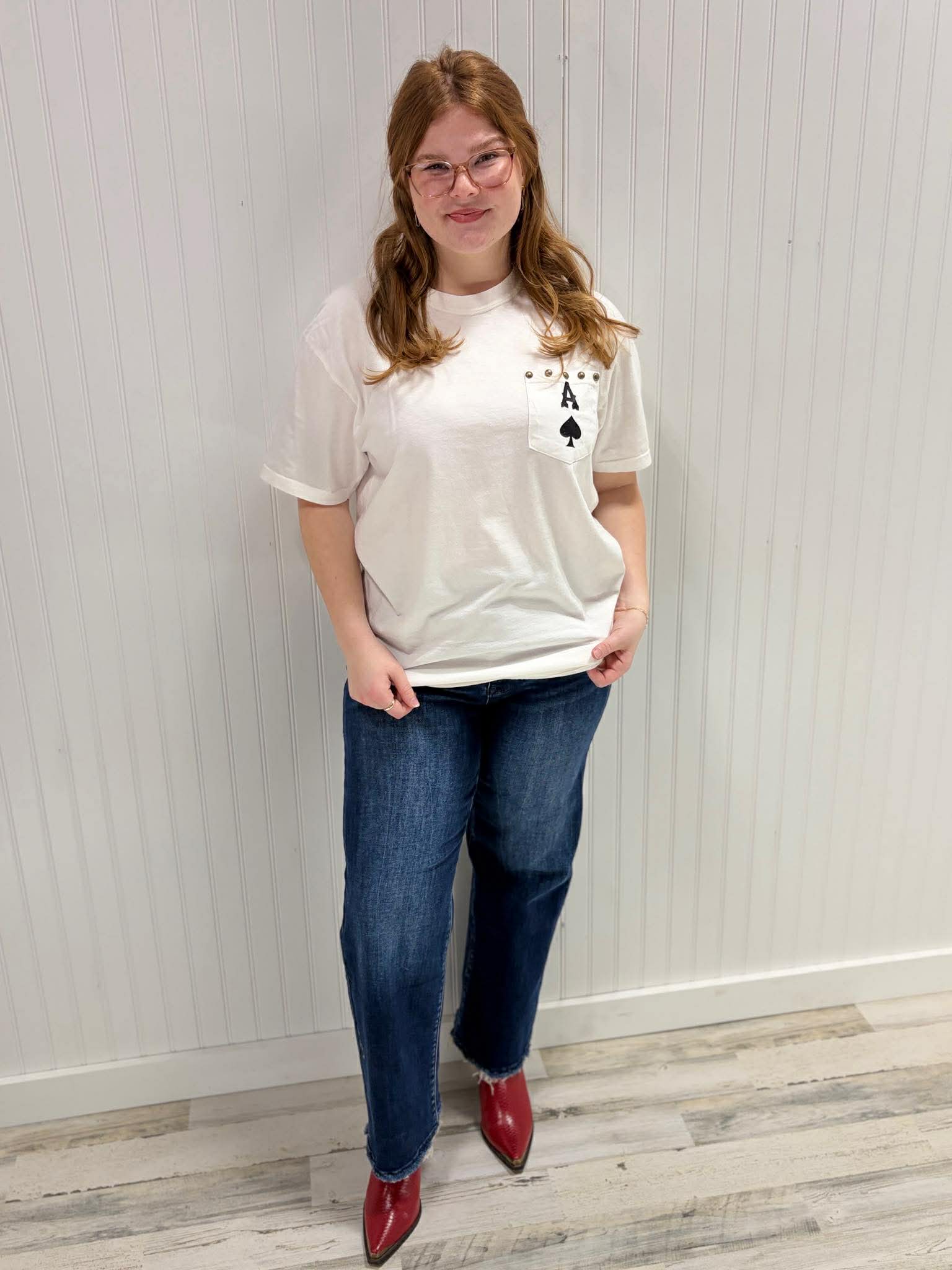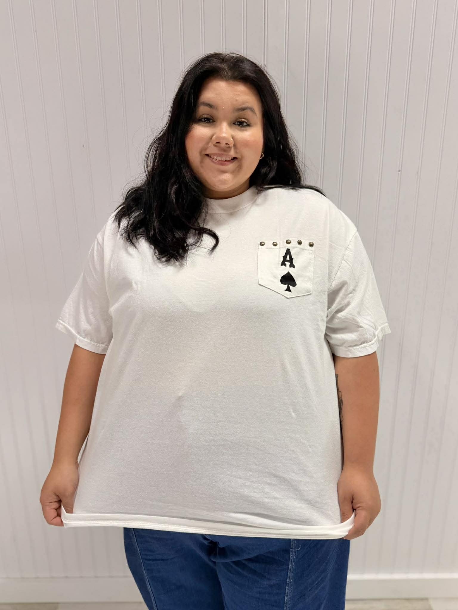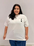 Slip into the Roxanne Tee and add a little humor to your wardrobe. This playful graphic top is sure to make a statement and bring a smile to your face. With its quirky design, you'll stand out in a crowd and keep things light and fun. Get ready to turn some heads with this unique addition to your collection.