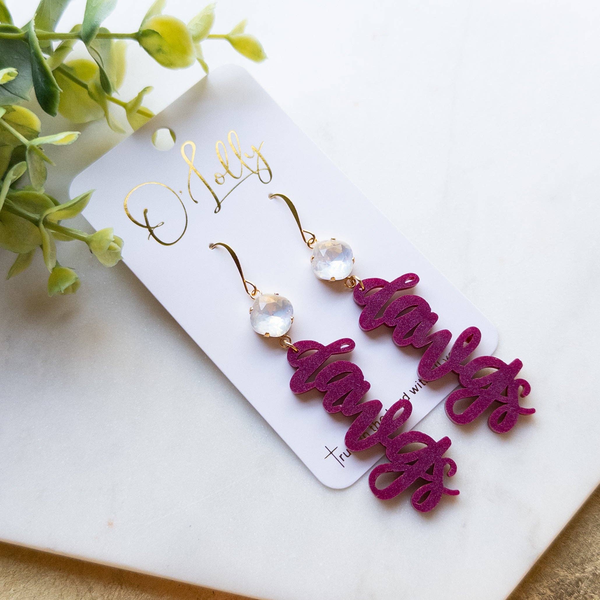 Maroon Shimmer Dawgs Earrings w/ White Stone