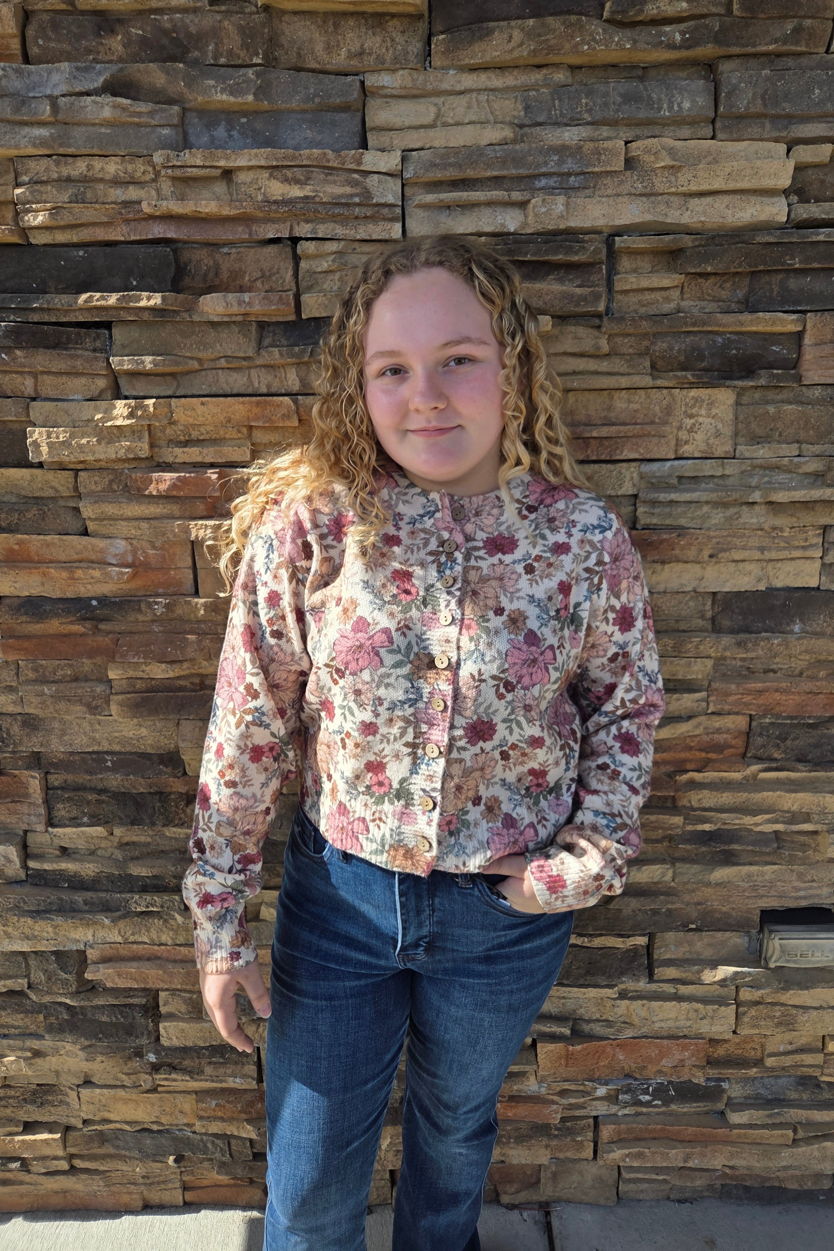 "Get cozy in the Faynna Cardigan - stylish and adorable, this cute cardigan is the perfect addition to any outfit. Stay warm and chic with this must-have!"