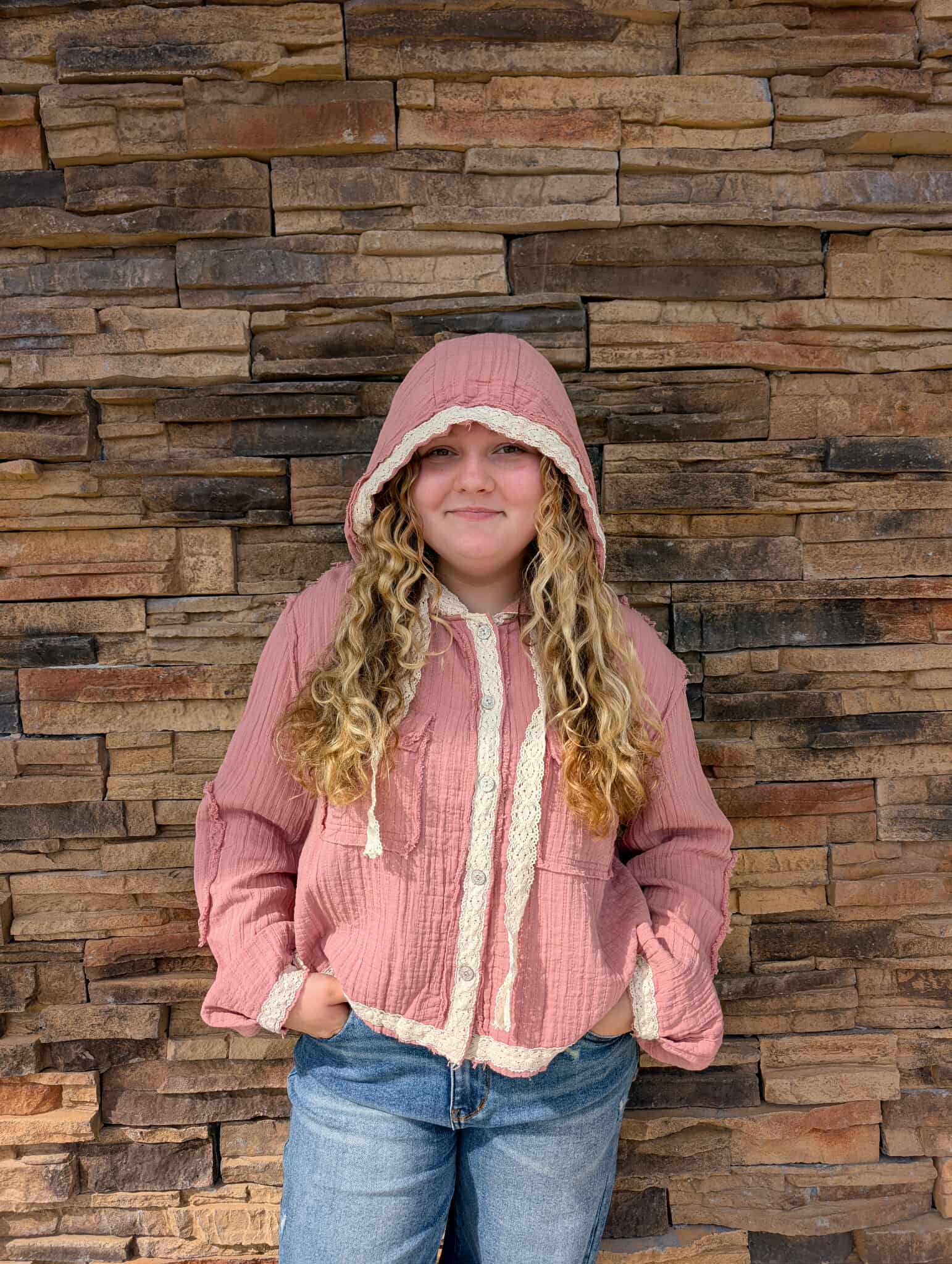 The Malee Shacket in pretty pink combines comfy coziness with chic style. Featuring a hood for extra flair and warmth, it’s perfect for layering on those laid-back days when you want to look effortlessly cool. Stay snug, stylish, and playful wherever you go!