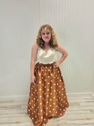 Elevate your wardrobe with this stunning printed woven maxi skirt—the perfect blend of style and practicality. Featuring a flattering full silhouette, functional side pockets, and a sleek back zipper, this piece transitions effortlessly from day to night. Crafted from 100% polyester for easy care and lasting wear.