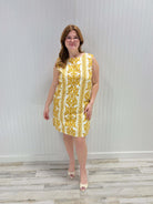 Rock this fun printed woven mini shift dress that's ready for anything your day throws at you. The breezy round neckline pairs perfectly with a practical back button closure, making it a breeze to slip on and go. Built with soft 100% cotton and a polyester lining, it's your new go-to for looking put-together while staying totally comfortable.